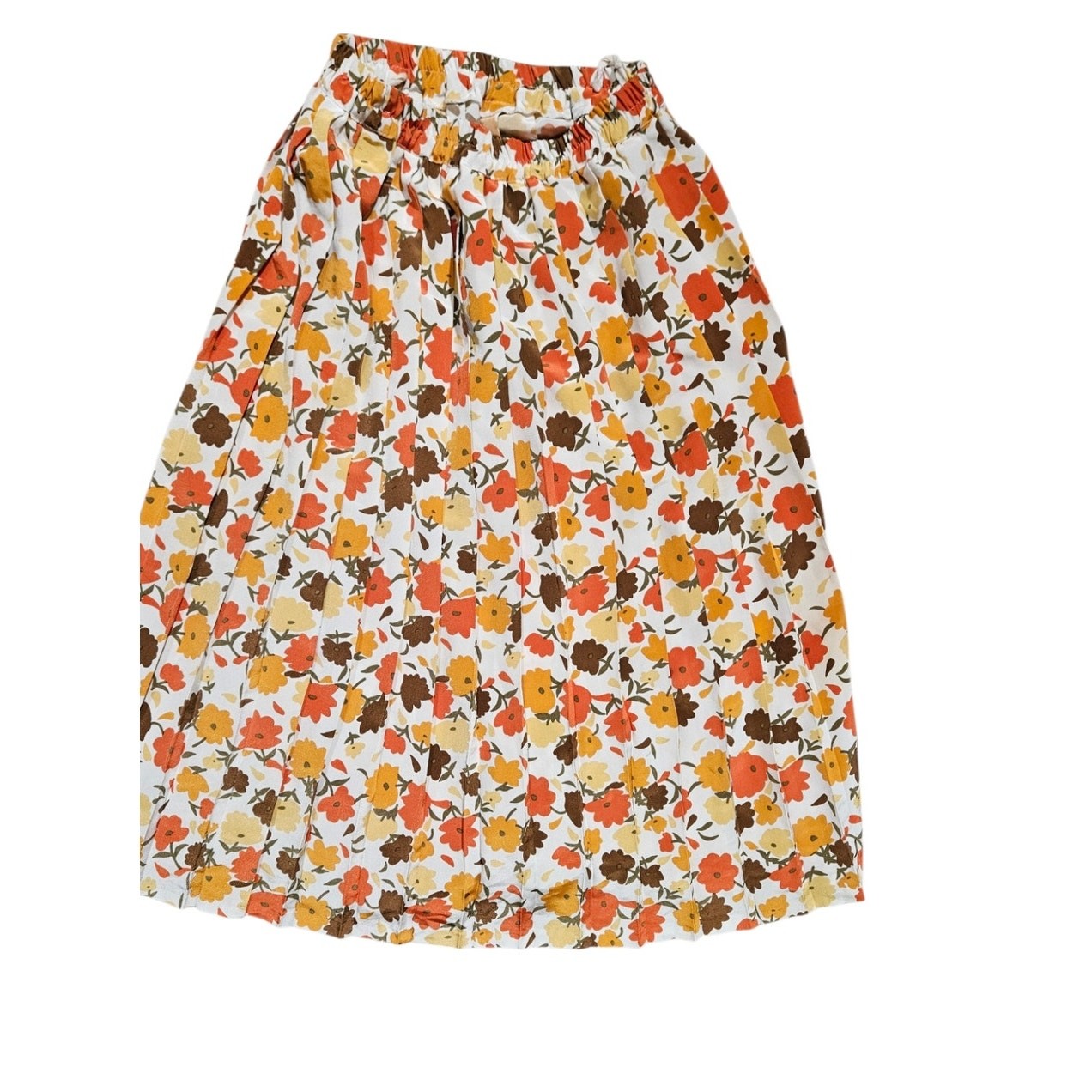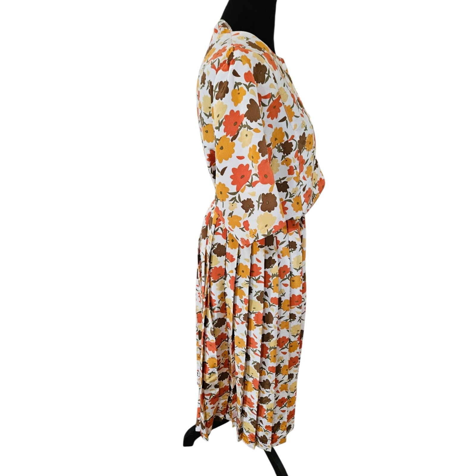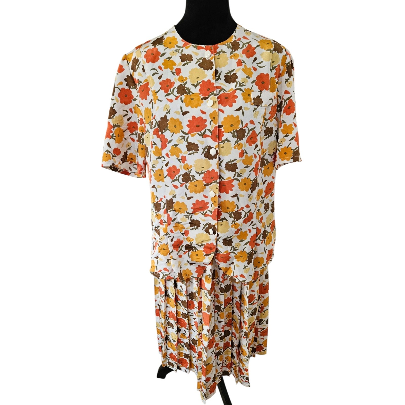 Vintage 70s Floral 2-Piece Set Top Pleated Skirt Boho S/M