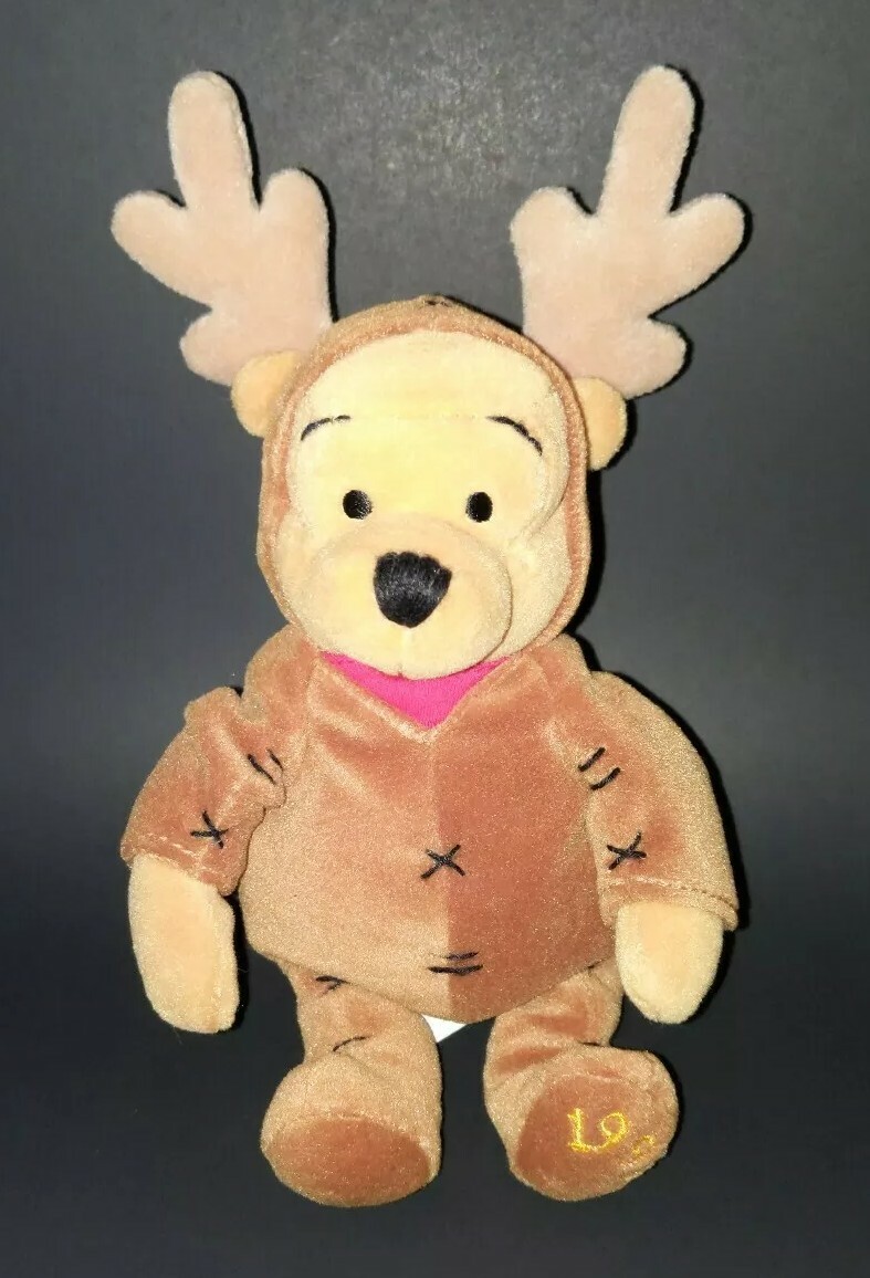 как выглядит Vtg The Disney Store Winnie the Pooh Reindeer Bean Bag Beanie Plush Toy 1999 фото