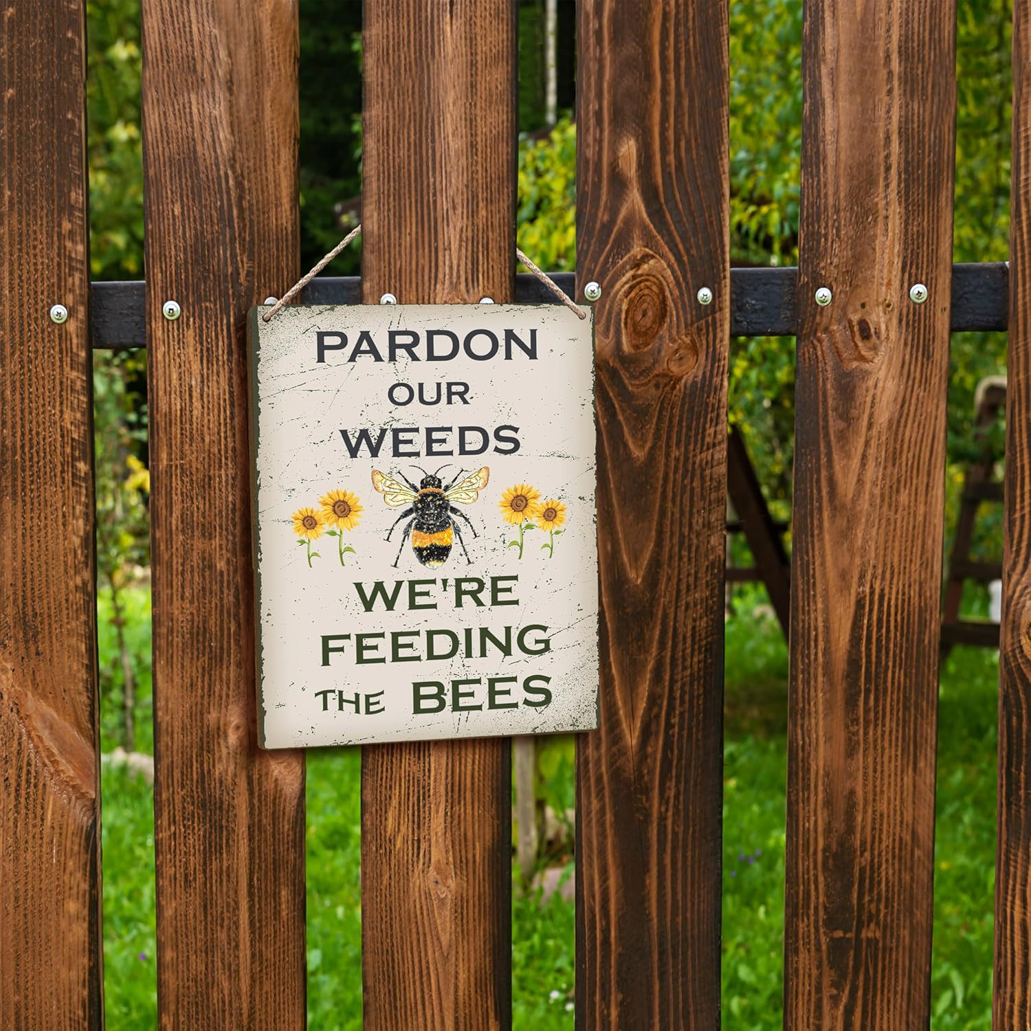 Pardon Our Weeds We'Re Feeding the Bees Hanging Wooden Signs 8X10, Garden Signs,