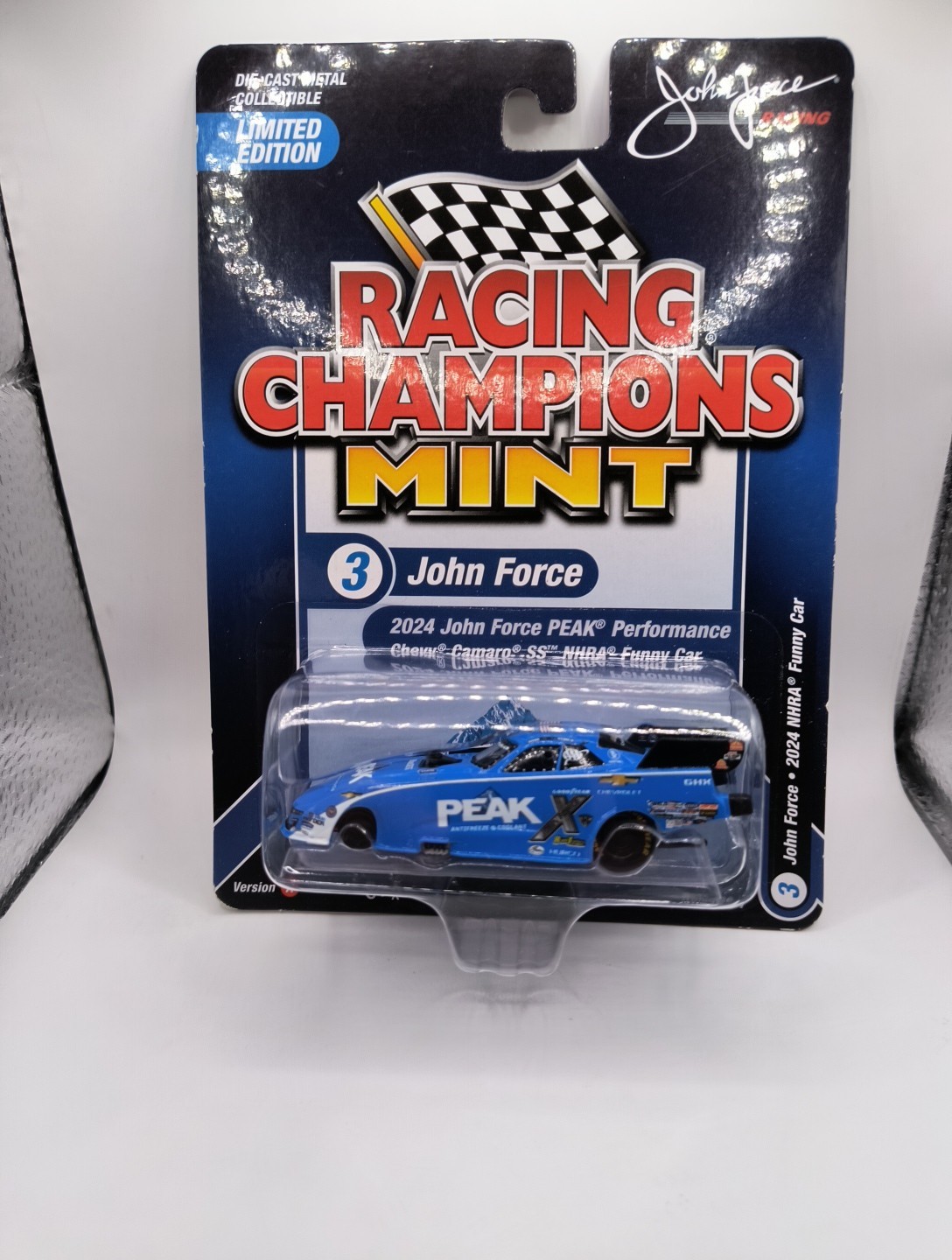 Racing Champions Mint 2025 Blue 2024 John Force Chevy Camaro SS NHRA Funny Car