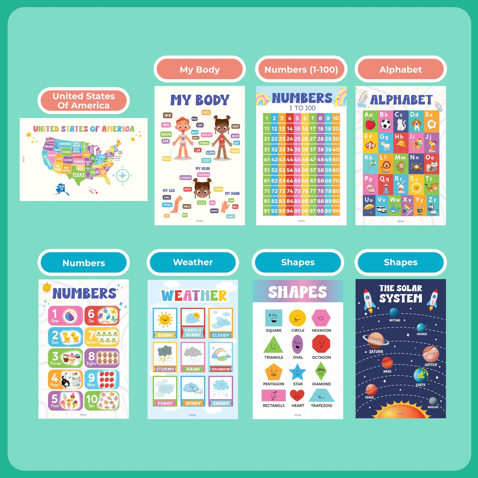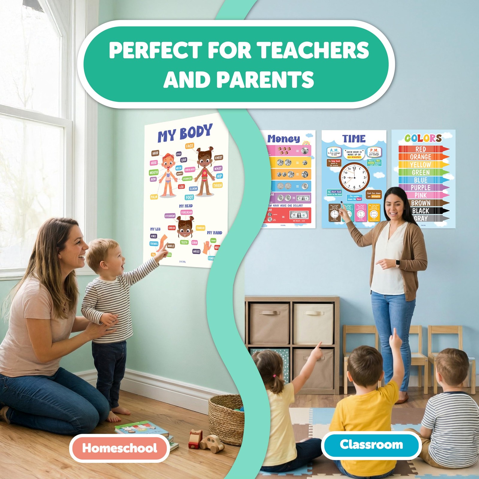 16 Colorful Educational Posters For Toddlers 1-3, Toddler Learning Posters Fo...