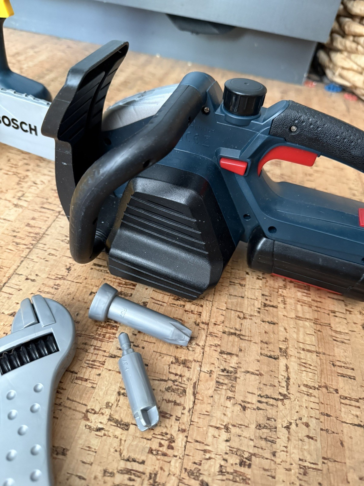 Klein Bosch Pretend Play Chainsaw Drill Tools Hardhat Wrench Drill Bits Gloves