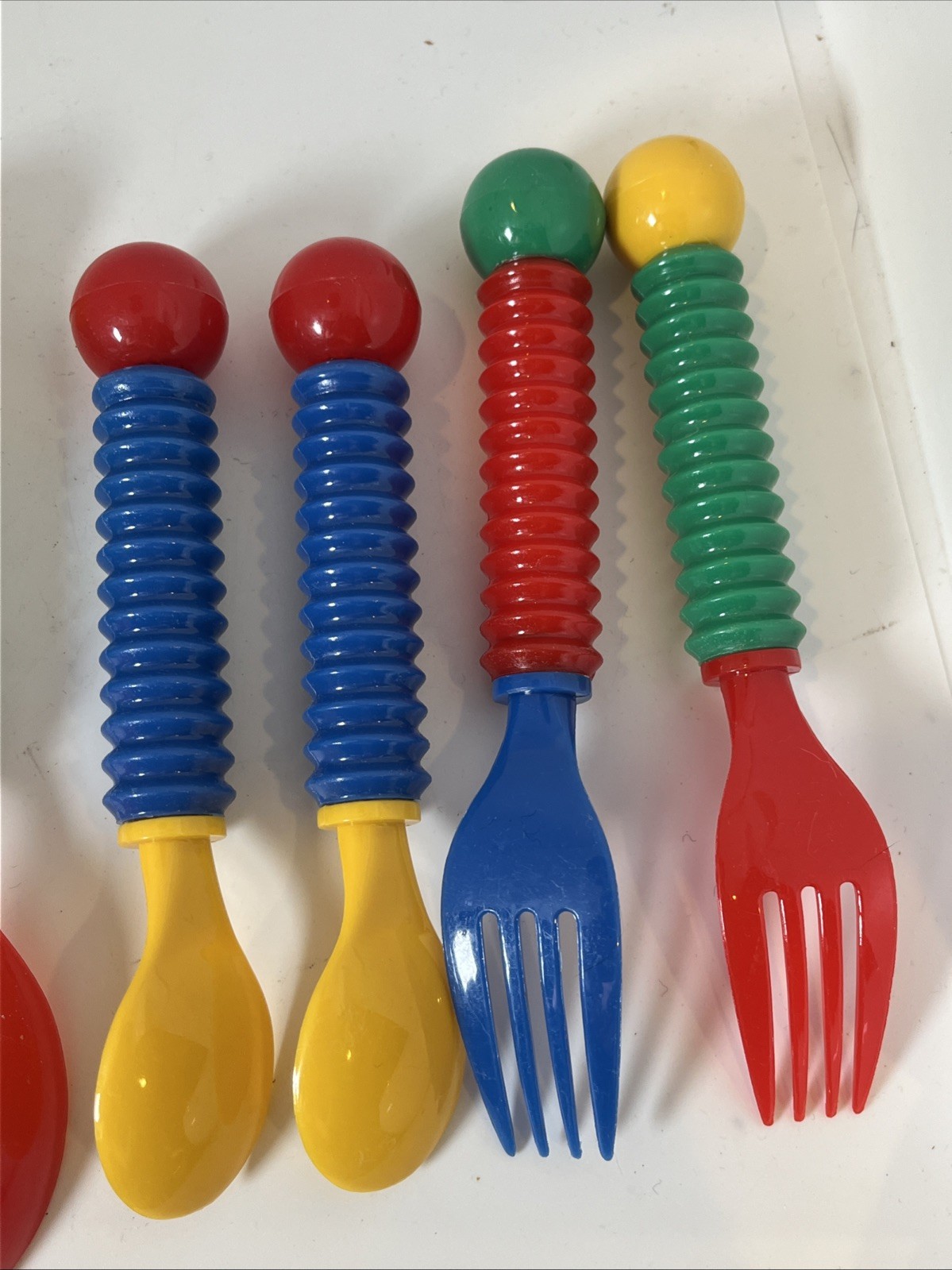 Vintage 1980s Plastic Cutlery Lot Of Red, Yellow, Blue, Green Pretend Play MCM