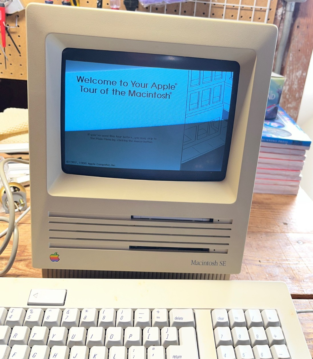 1987 Apple, Macintosh SE MODEL M5010 computer with Keyboard and Mouse.