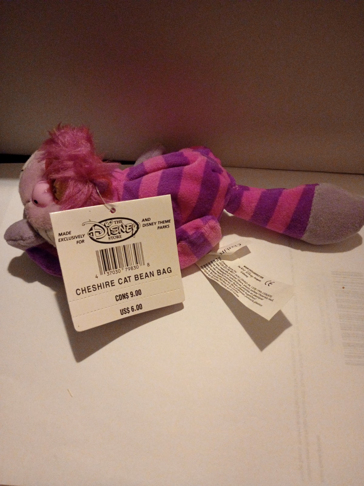 Disney Store Vintage Cheshire Cat Bean Bag Plush Alice In Wonderland NWT