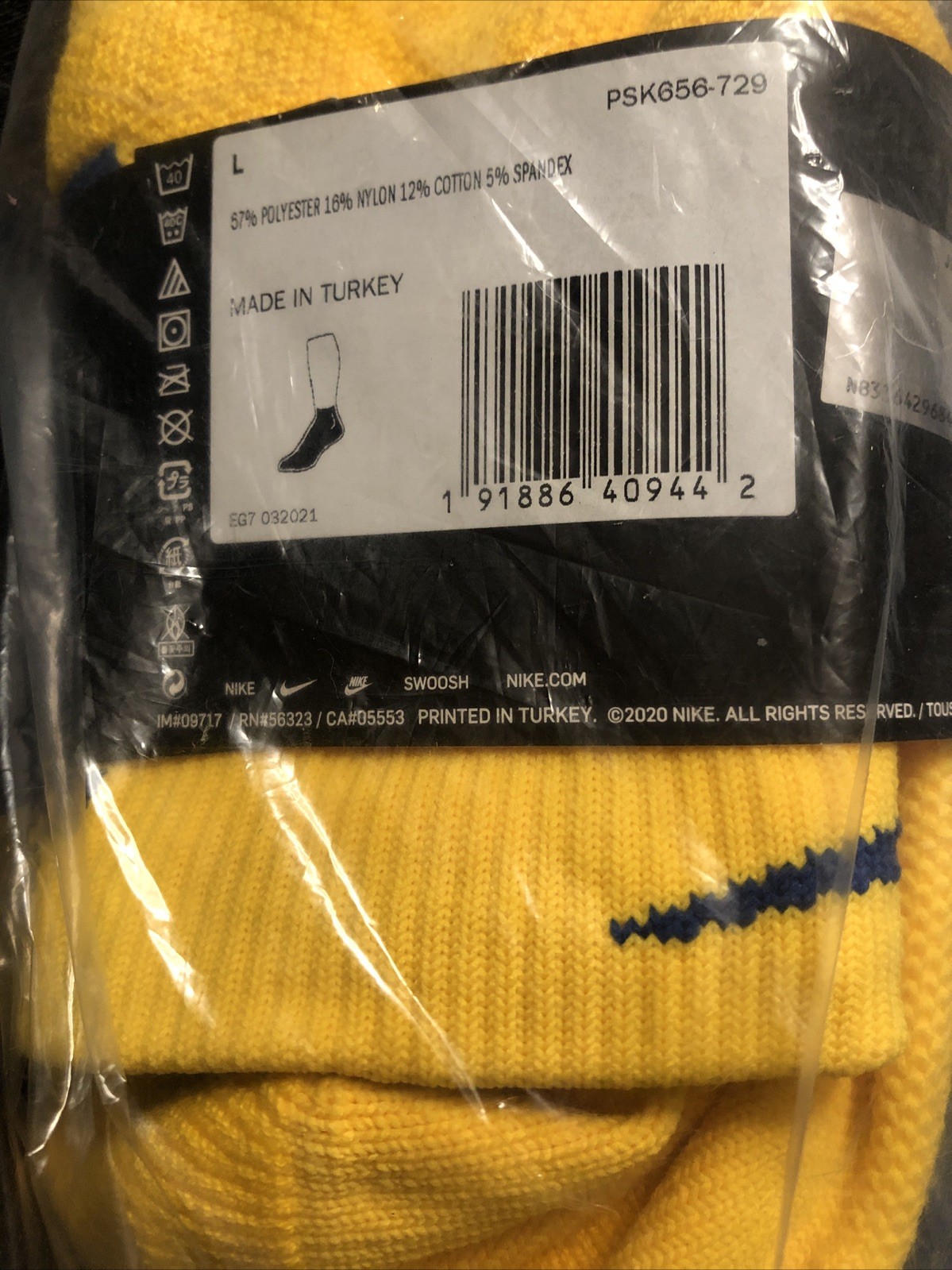 Nike NBA Authentics Basketball Socks Size Large PSK656-729 Yello/Blue 100