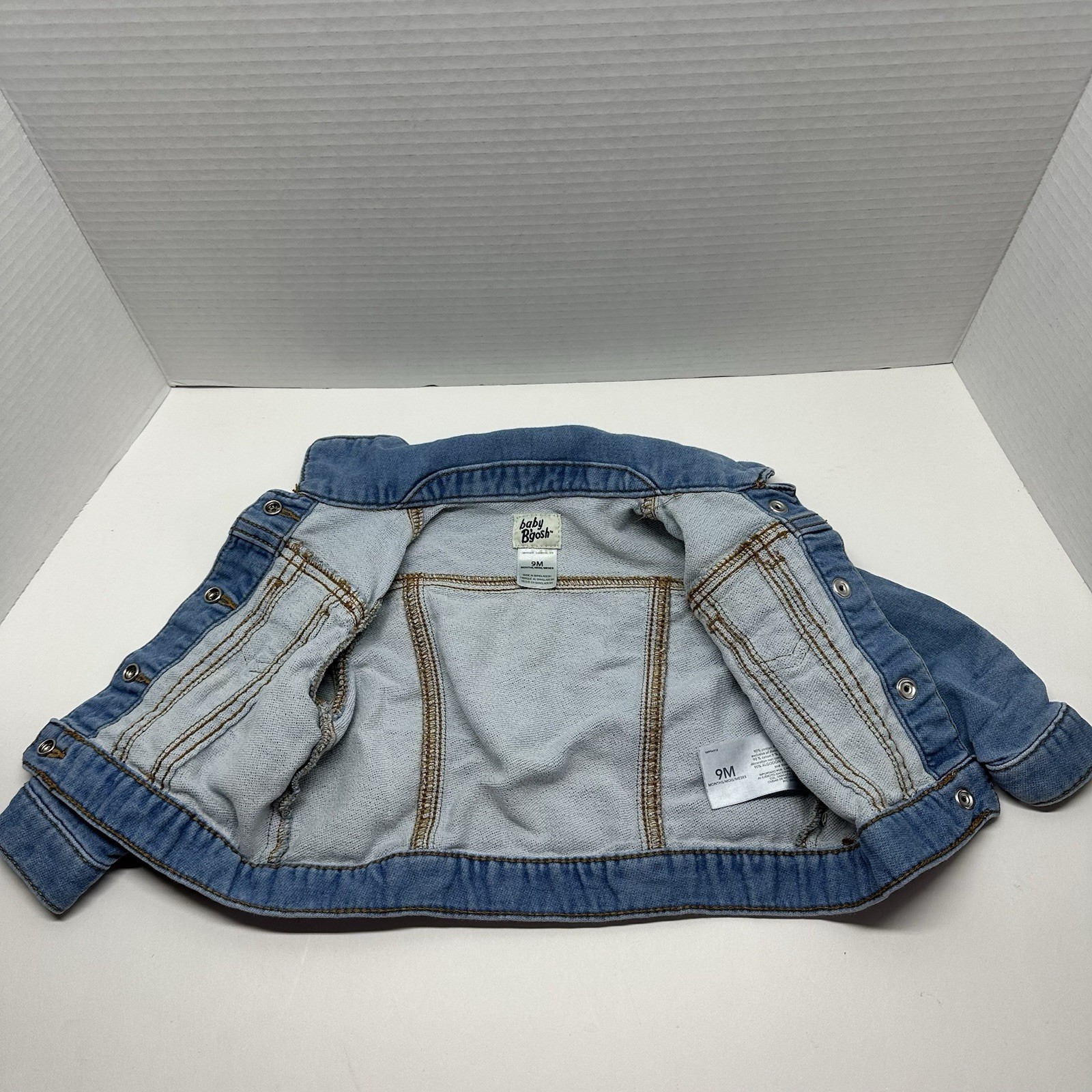 как выглядит Baby Bgosh 9 Mths Light Wash Long Sleeve Collared Snap Up Denim Jean Jacket фото