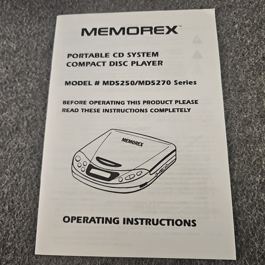 Vintage 1996 Memorex Personal Compact Disc CD Player MD5250CP