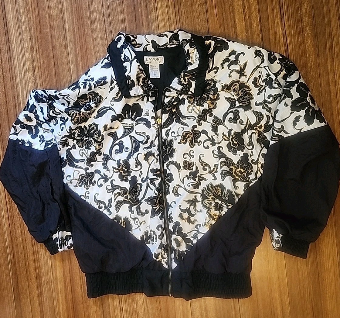 как выглядит Vintage Lavon 1980-90s Tracksuit Windsuit Sz M Retro Lined Black Gold Floral фото