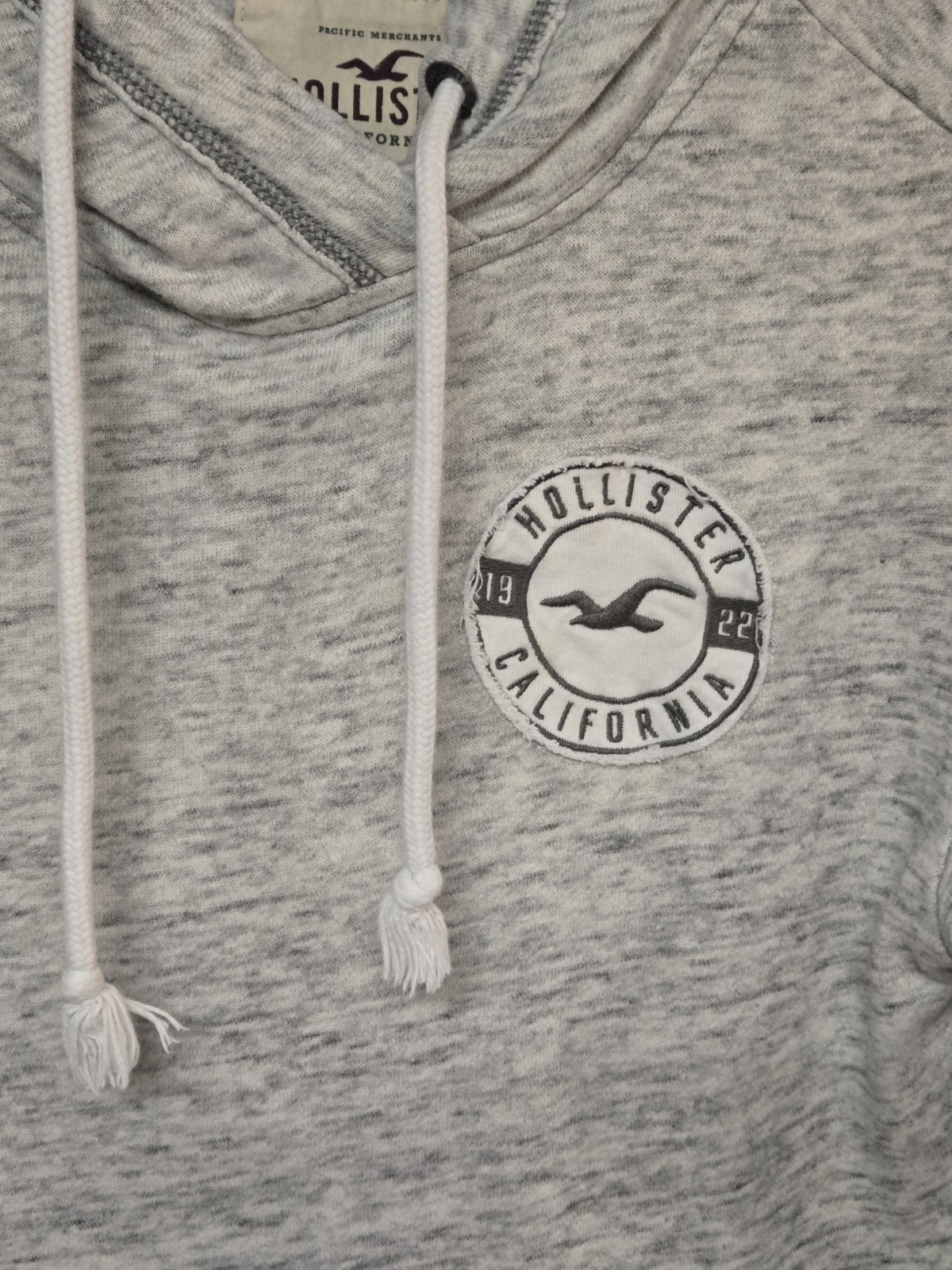 как выглядит Hollister Women s Medium Gray Graphic Logo Pullover Hoodie Thumbholes Pocket фото
