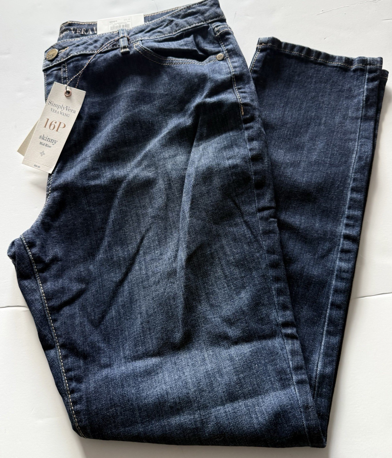 Simply Vera Vera Wang Nwt Women Size 16P Blue Mid Rise Skinny Logo Denim Jeans