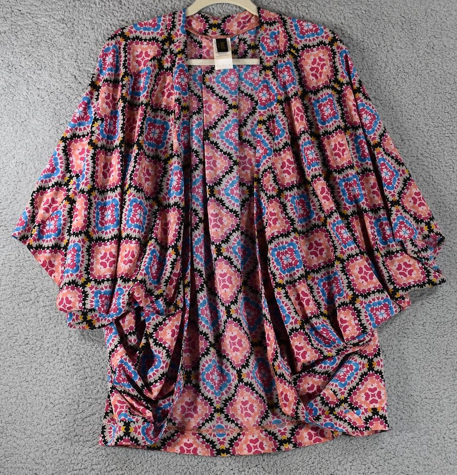 Laundry By Shelli Segal Kimono Womens Large Patterned Open Front Rayon
