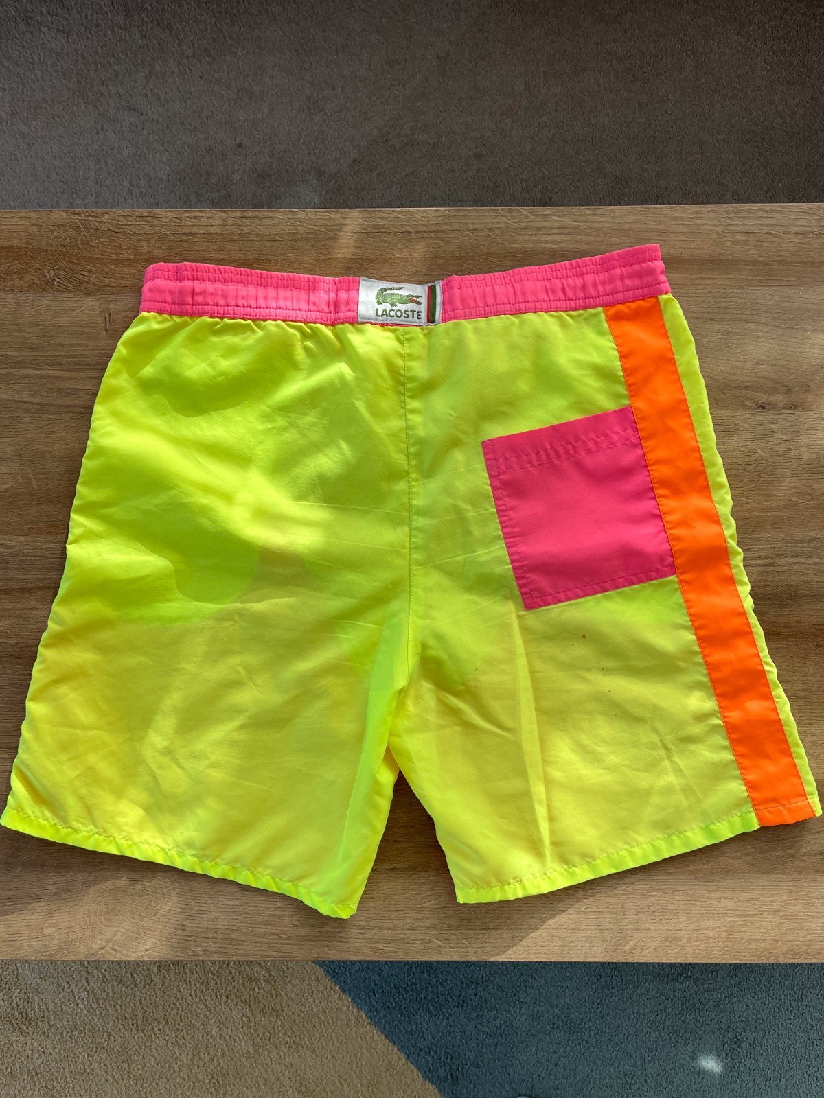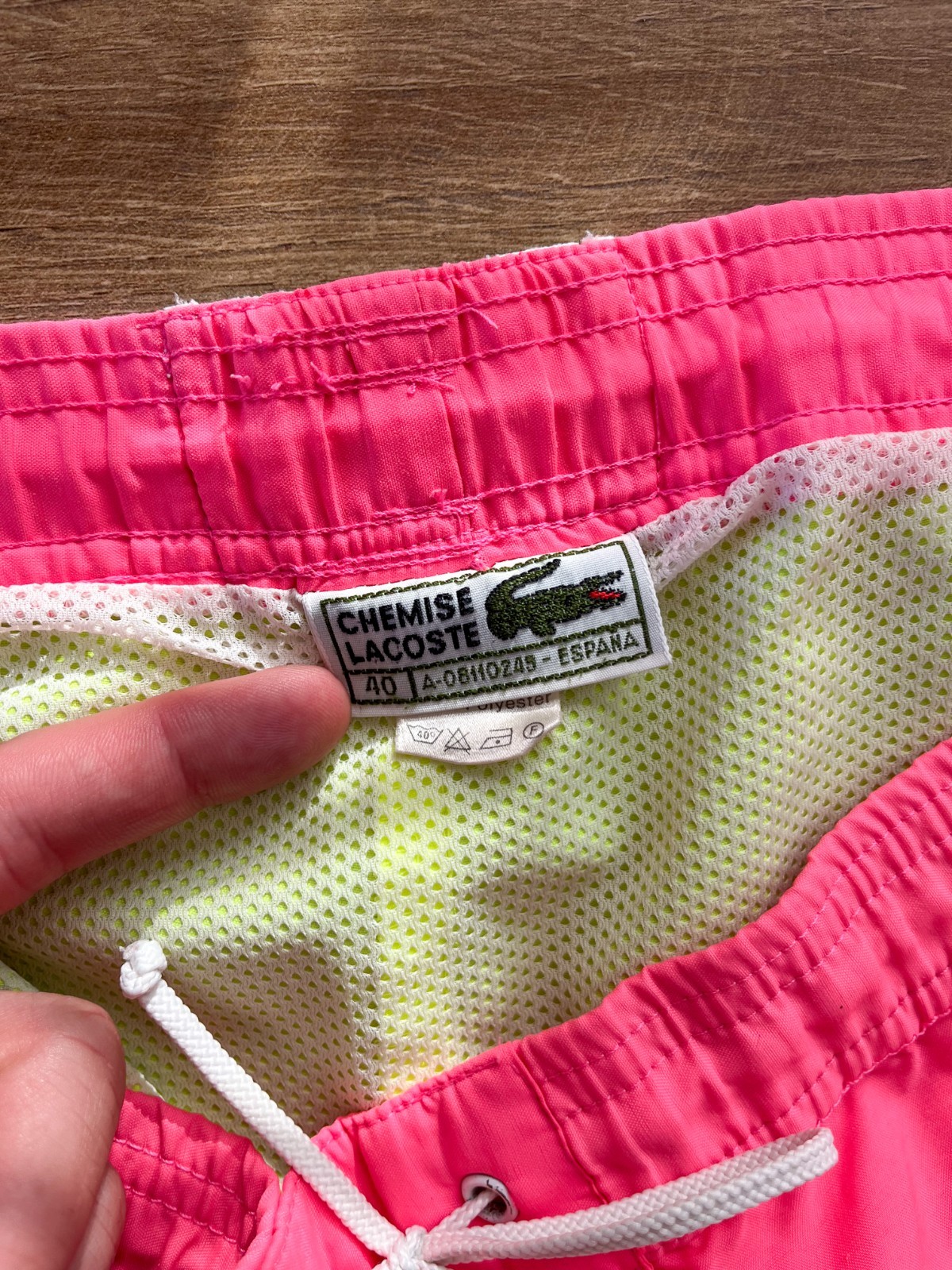 Vintage Lacoste Swim Trunks Neon Pink Yellow Colorblock Made In Spain Men s 40