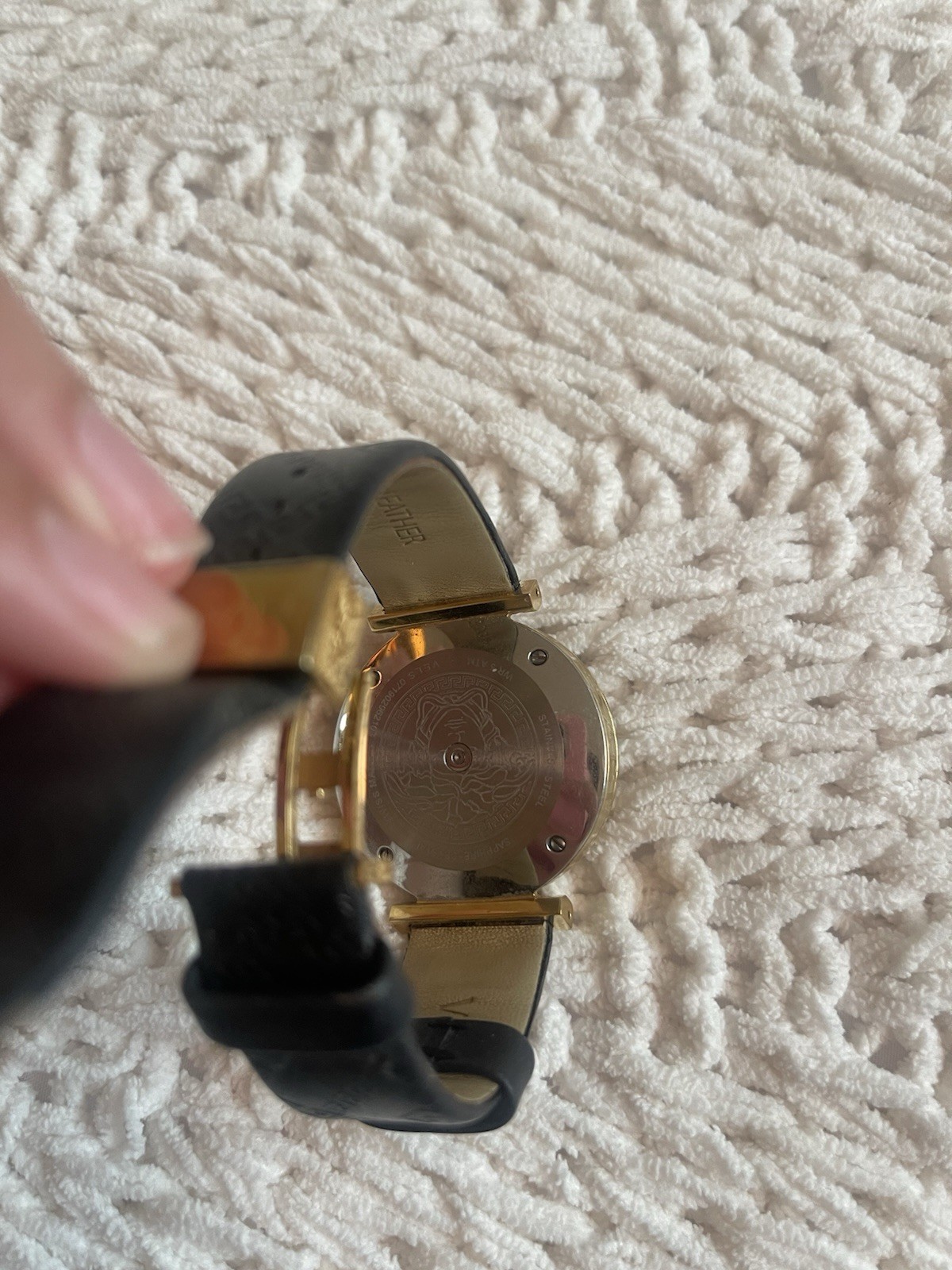 Versace Swiss Made Dress Watch Gold-Plated Case Black Leather Band Analog