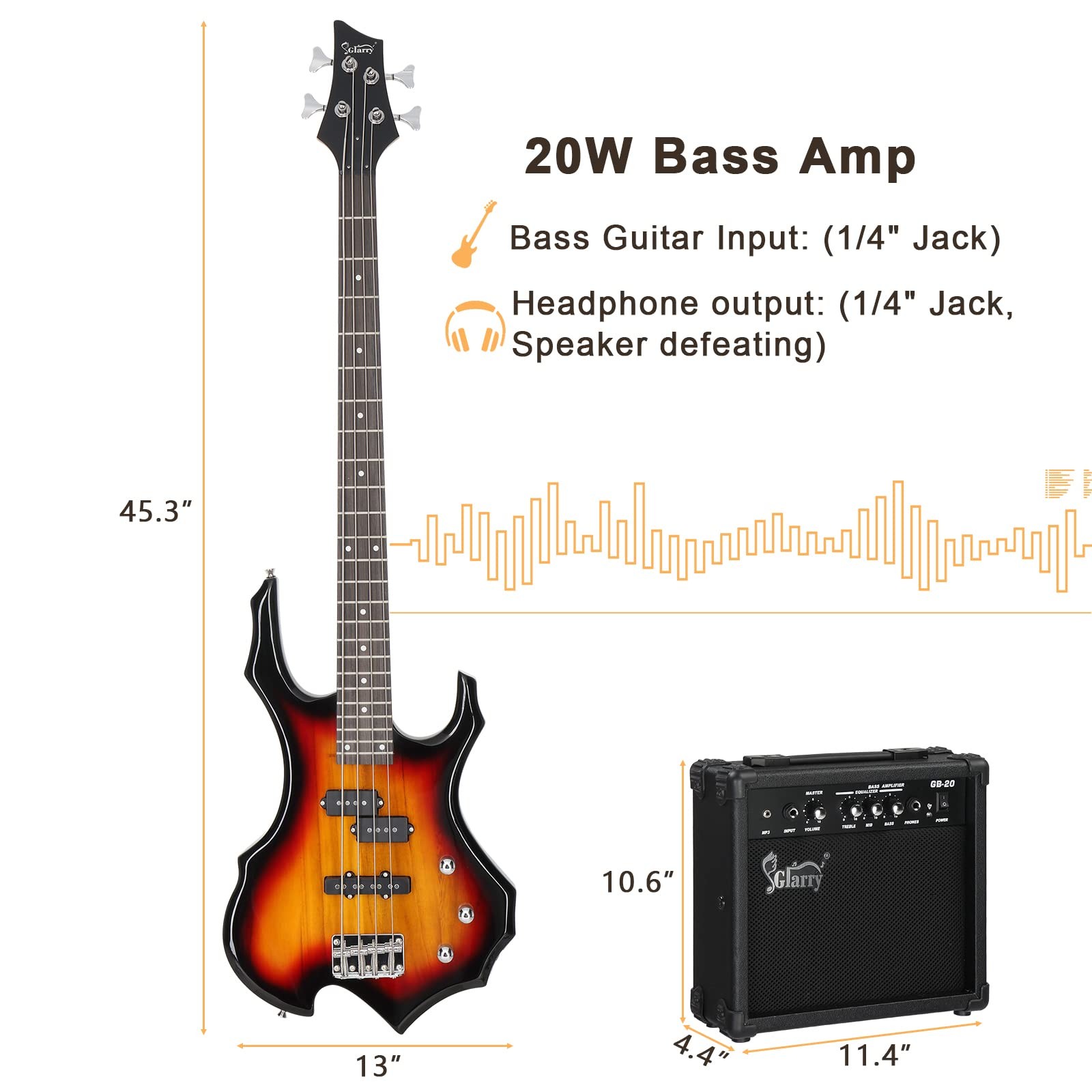GLARRY Electric Bass Guitar 4 Strings Buring Fire Style Full size, Sunset