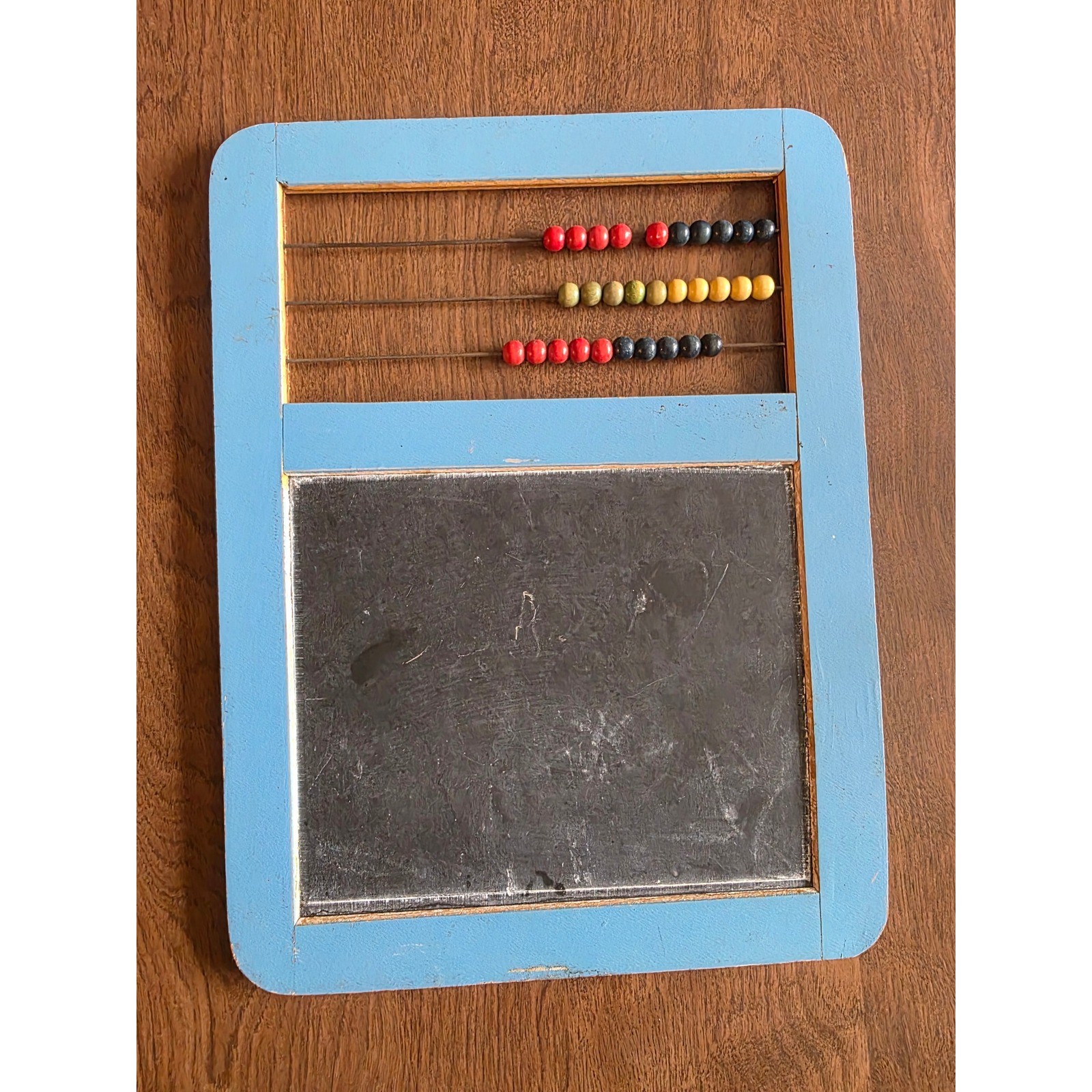 как выглядит Vintage Wooden Abacus Chalkboard Educational Toy Blue Alphabet Numbers Learning фото