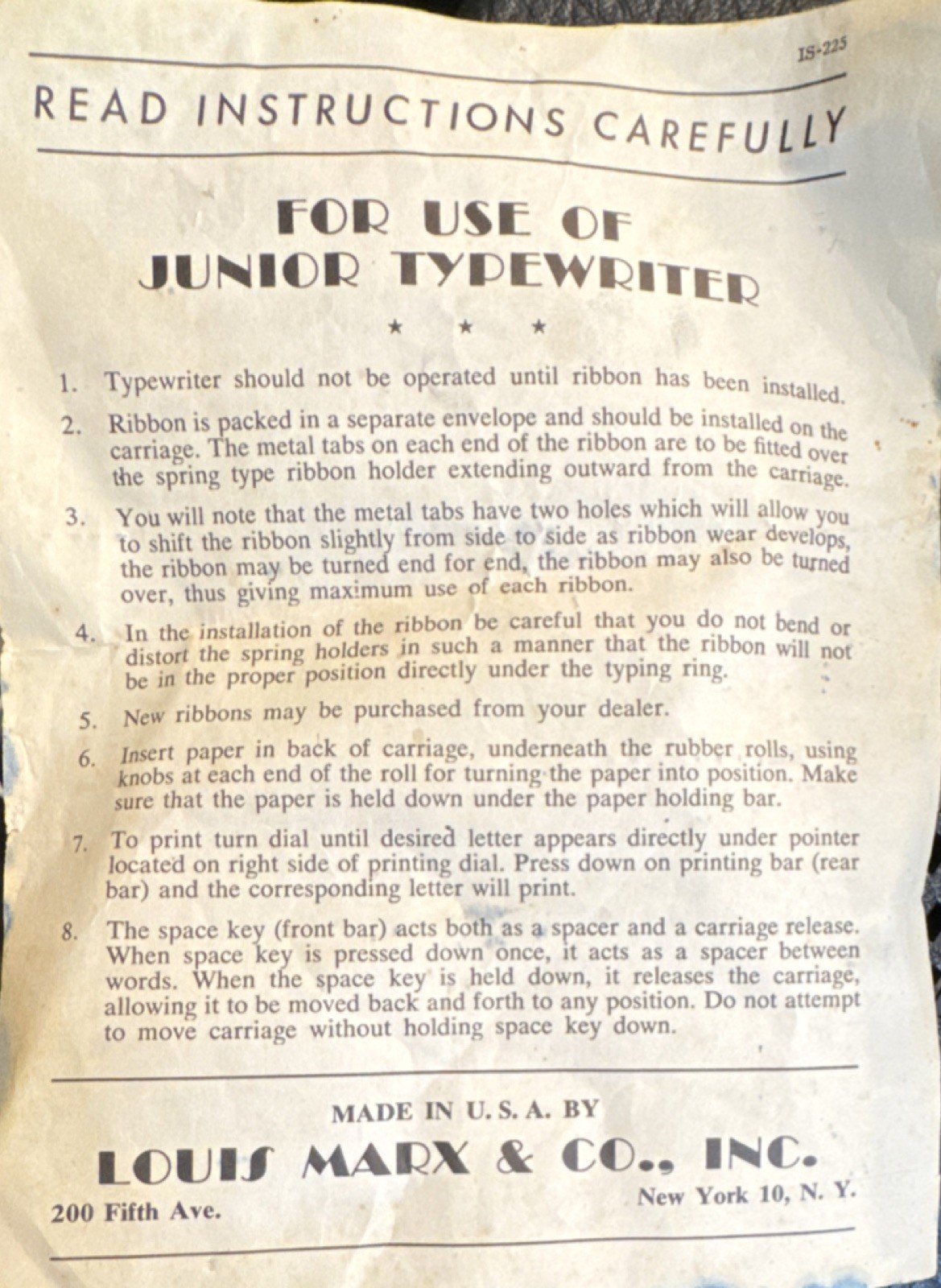 Louis Marx Co. Vintage Junior Typewriter Toy Steel Construction w/ Box