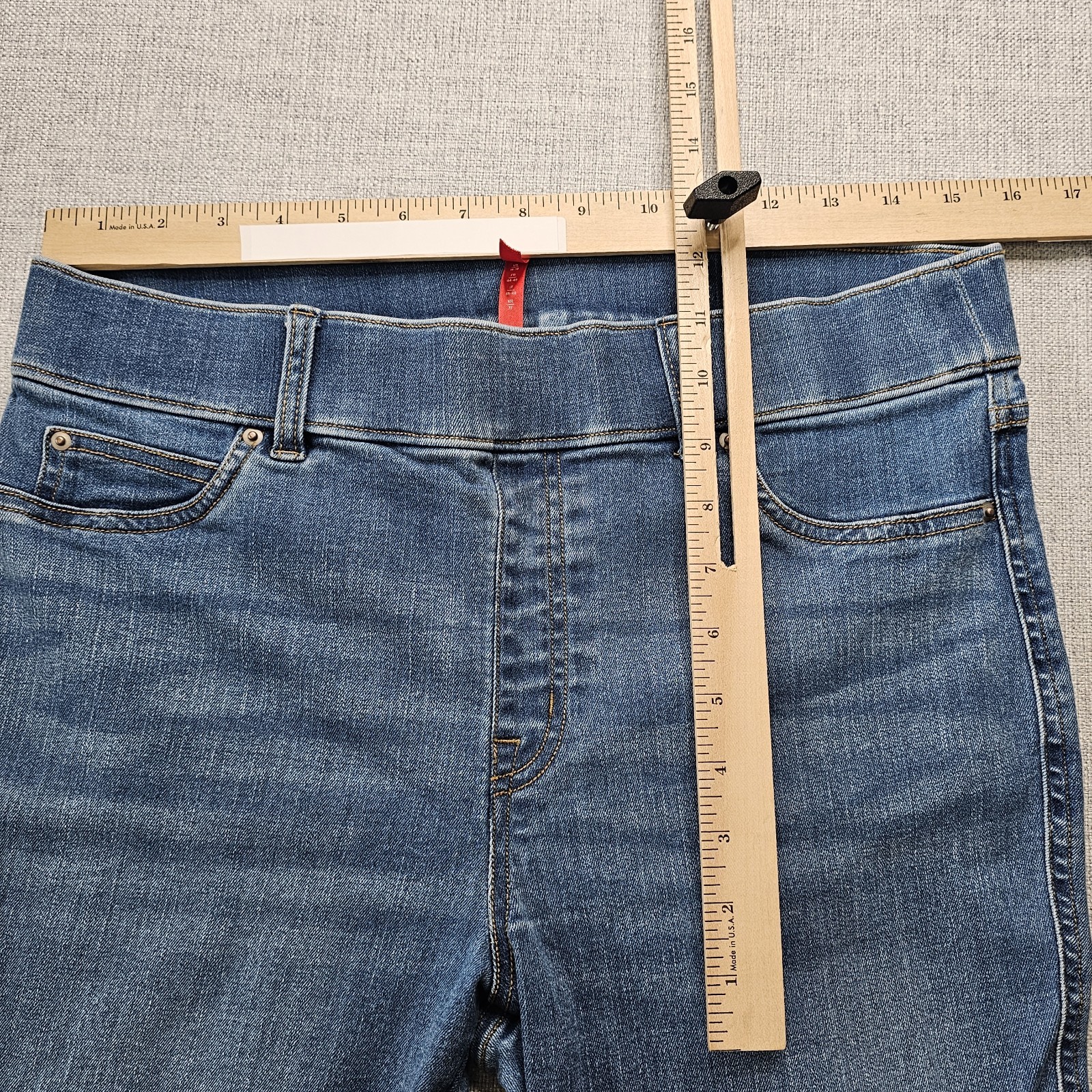 Spanx High Rise Flare Jeans Large Tummy Control Blue 28 Inseam Raw Hem