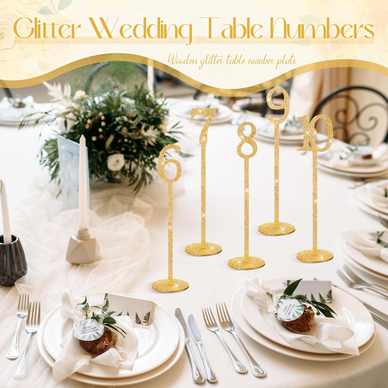 20 Pcs Glitter Table Numbers 1-20 Wooden Wedding Table Numbers for Wedding Re...