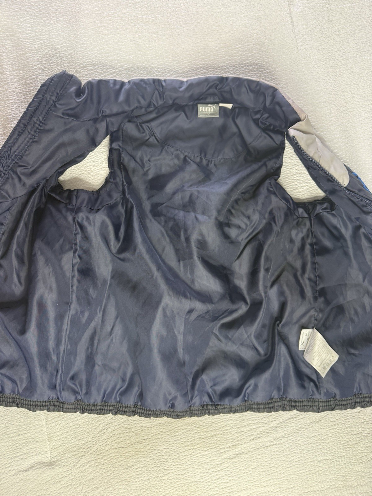PUMA Boys Colorblock Puffer Vest Navy Gray Size 6 Full Zip Insulated