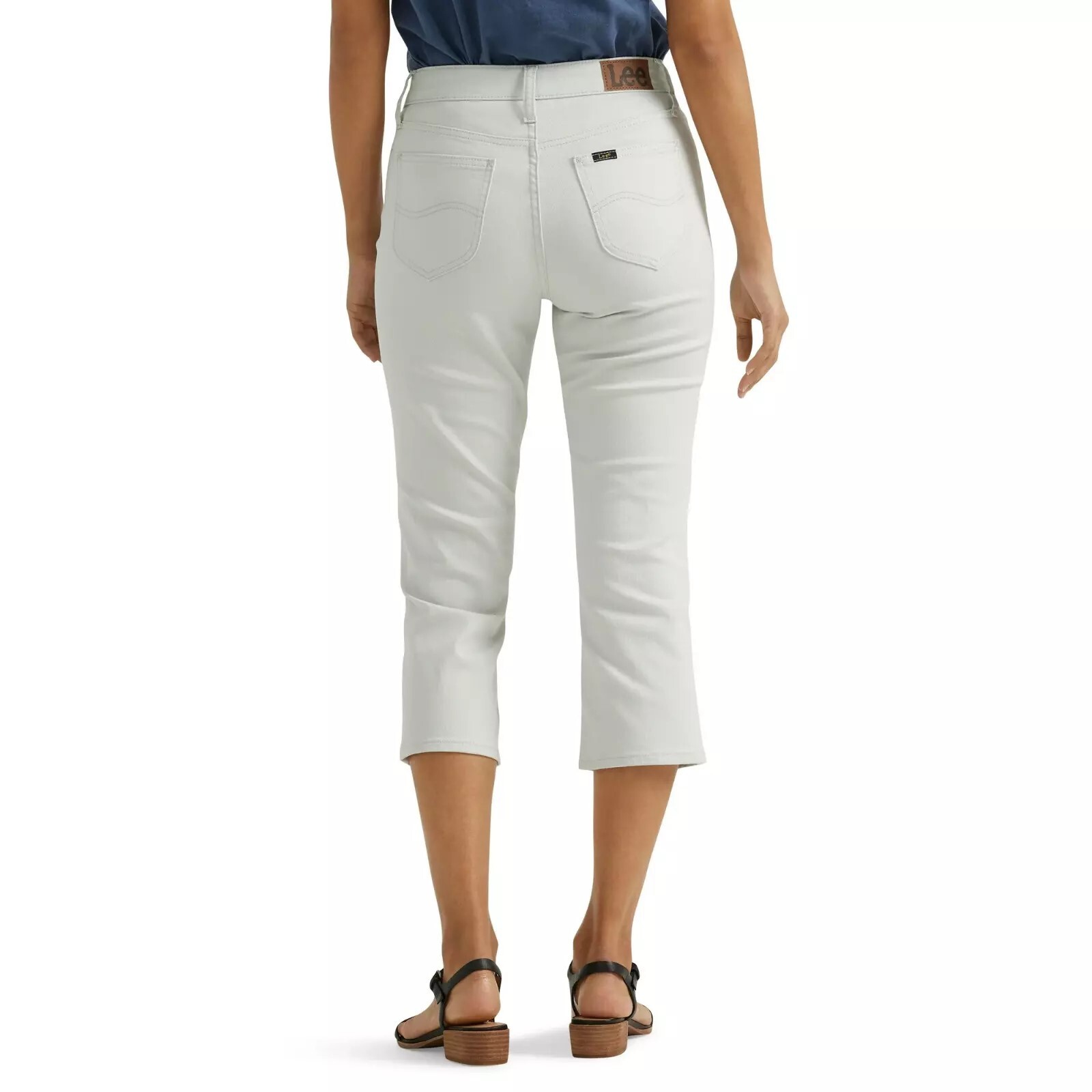 Lee Womens Denim Capri Stretch Mid Rise Regular Fit Pockets Soft Gray Size 18