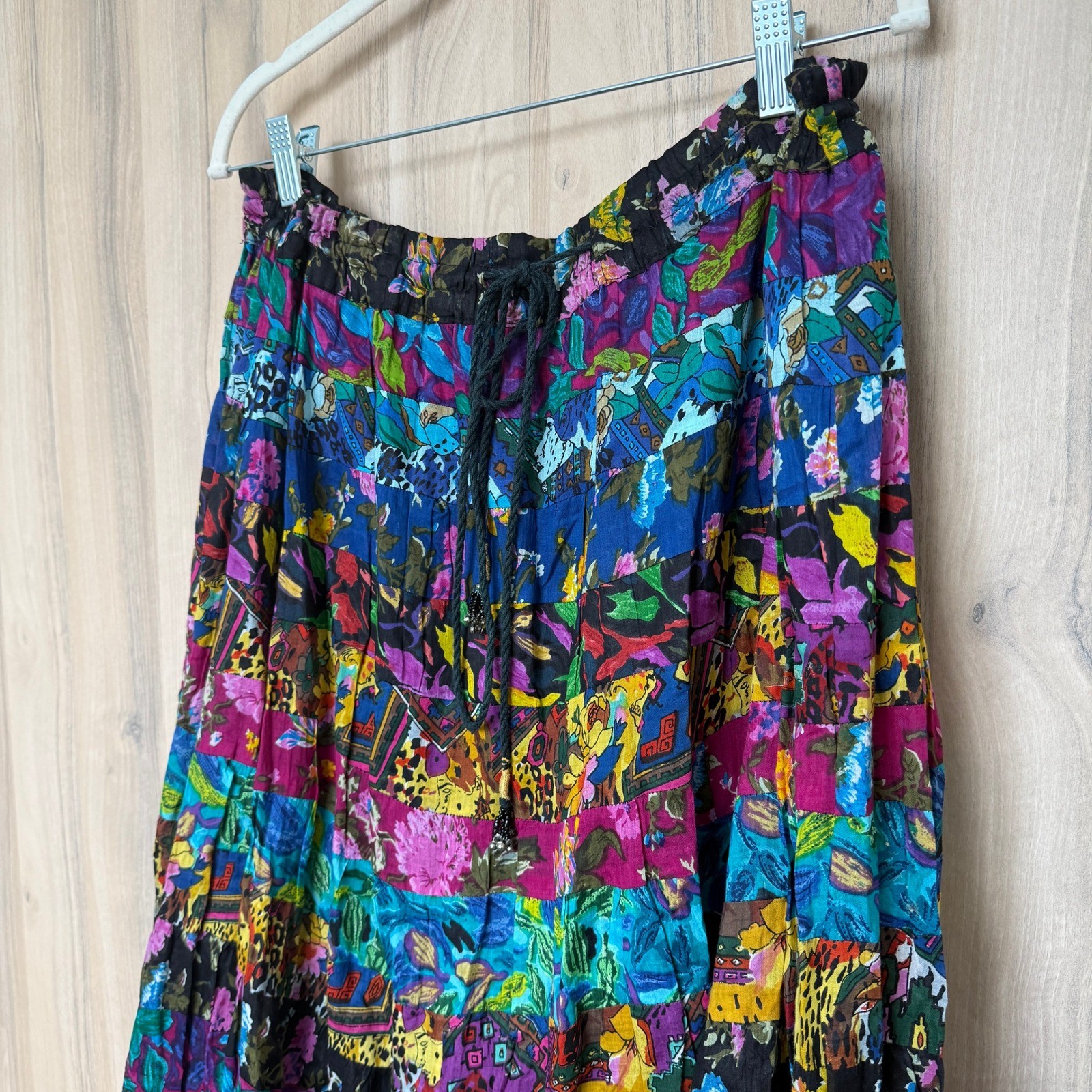 Vintage Patchwork Maxi Skirt One Size Multicolor Floral Boho Hippie Festival