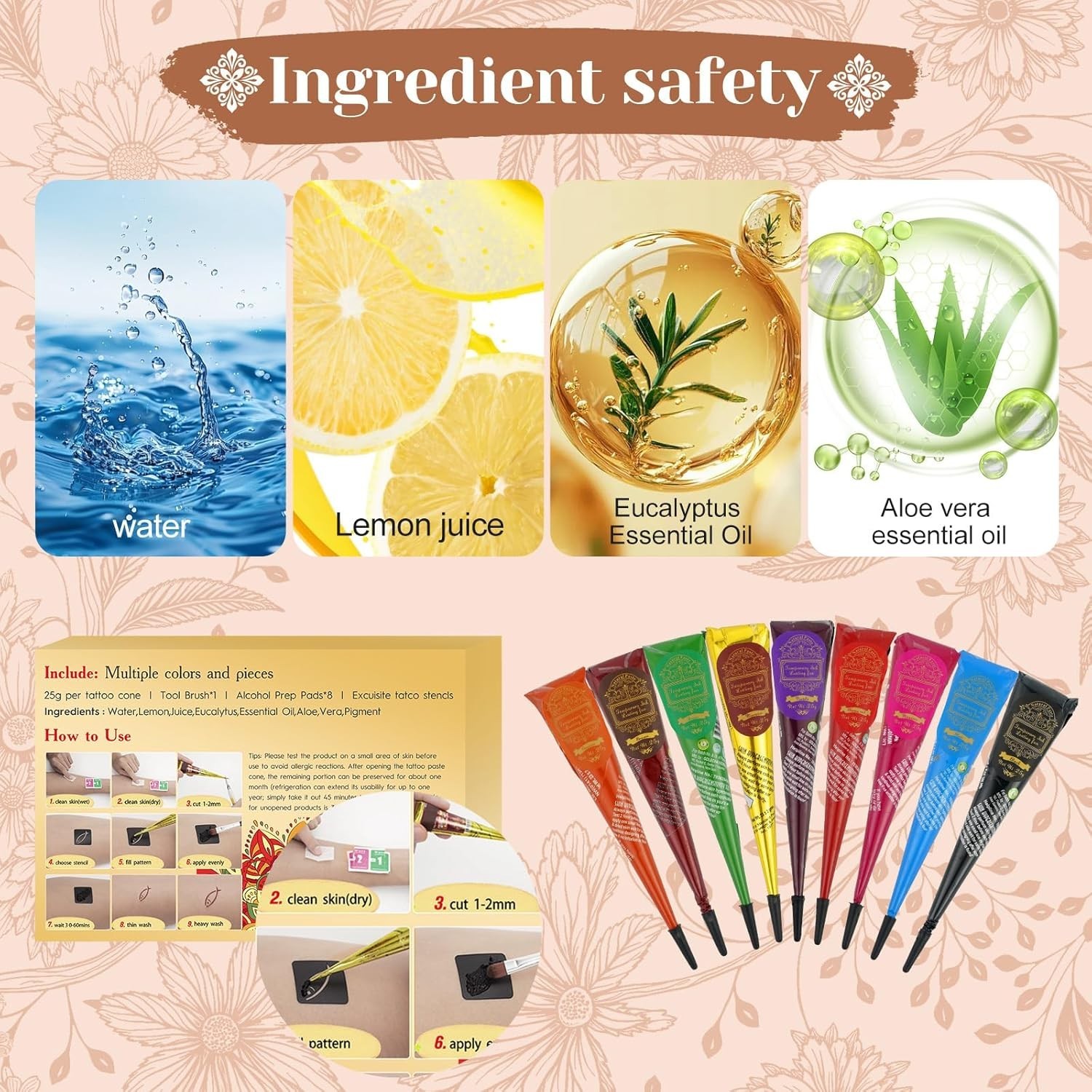 Temporary Tattoo Set with 255 Patterns Stencils
