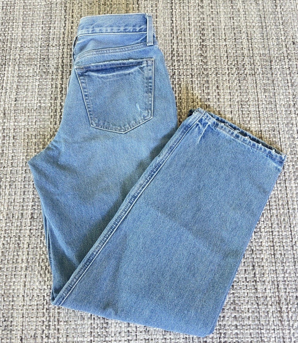 как выглядит Universal Thread Wide Leg Jeans Size 4 Mid Rise Light Wash Button Fly Denim фото