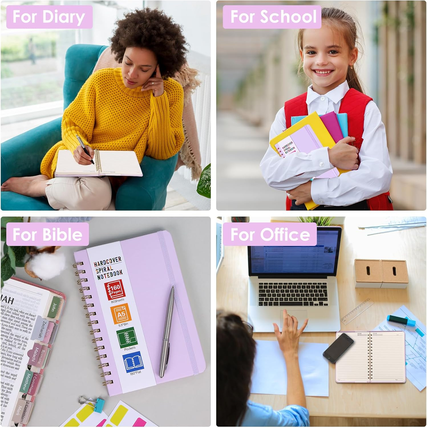 Spiral Notebook, 160 Pages A5 Lined Hardcover Notebook, 5.5 X 8In Spiral Journal