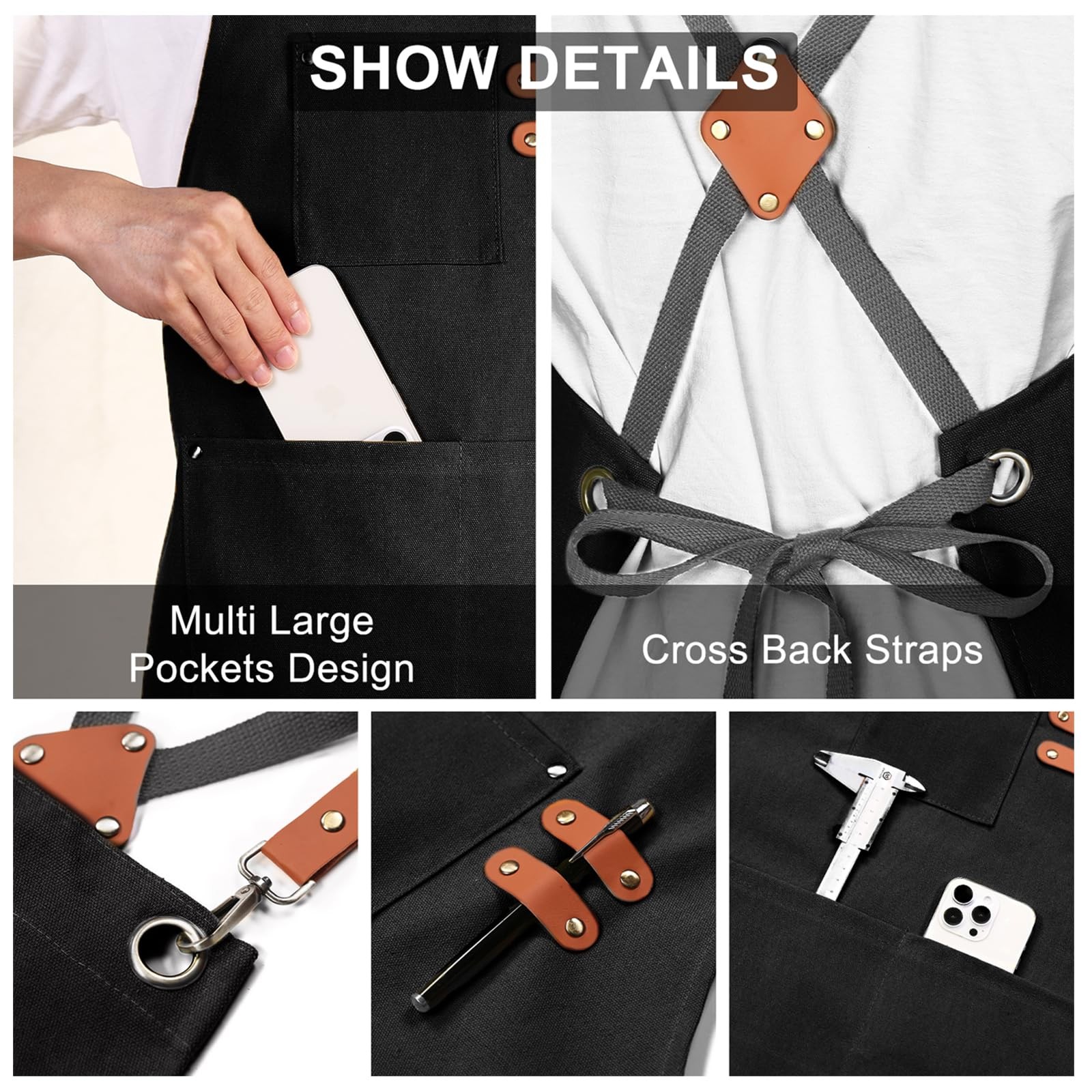 Chef Apron for Women Men with Large Pockets, Cotton Canvas Cross Back Waterpr...