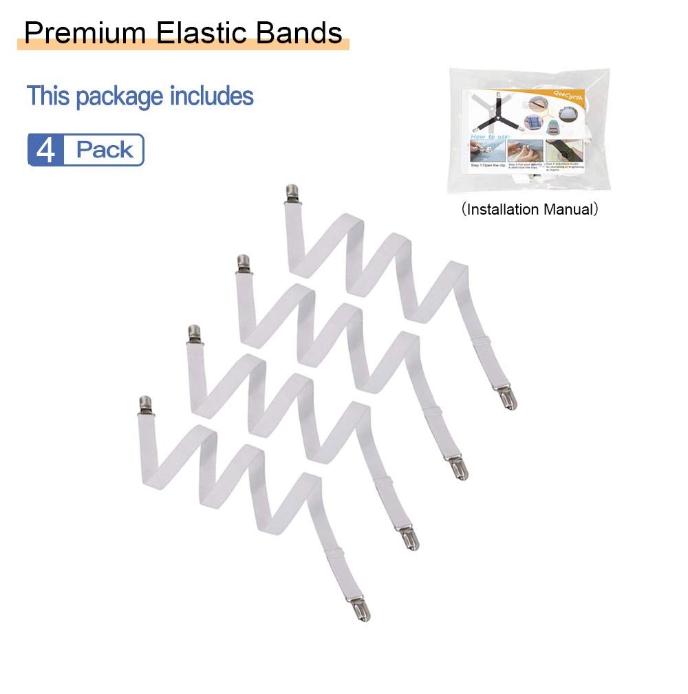 4Pcs Adjustable Bed Sheet Straps Clips, Elastic Mattress 4pcs-white
