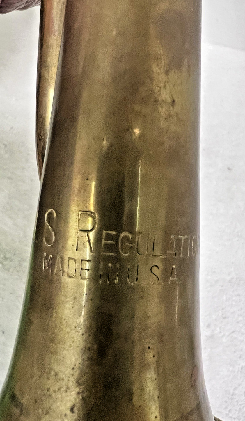 Antique Military US Regulation Stamped Brass Bugle Made In USA 17 1/8