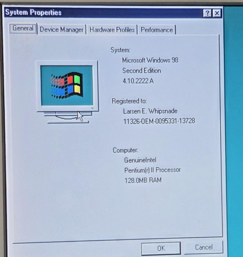 1999 Compaq Deskpro EN PC, Pentium II 400, 6GB HD, ATI 3D CD sound Windows 98 SE