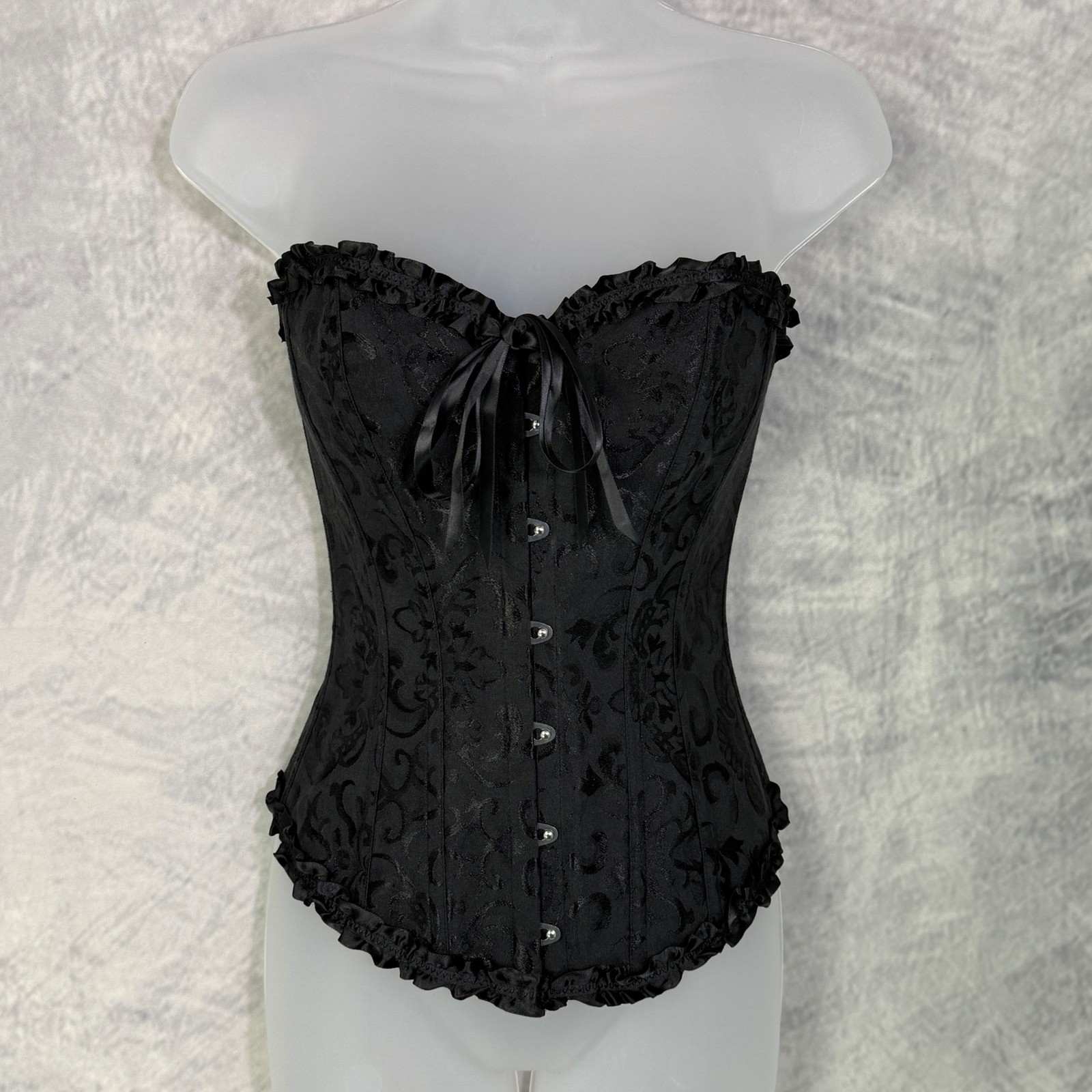Vrpo Corset Black Brocade Victorian Steampunk Lace Up Boned Corset sz XS Gothic