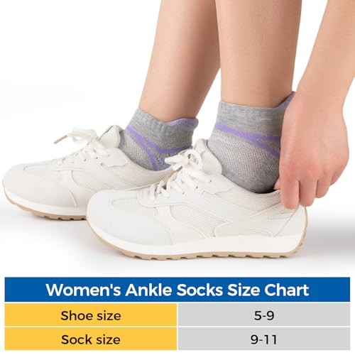 Womens Ankle Socks Athletic Cushion Low cut Mositure Gray Multicolor-7 Pairs