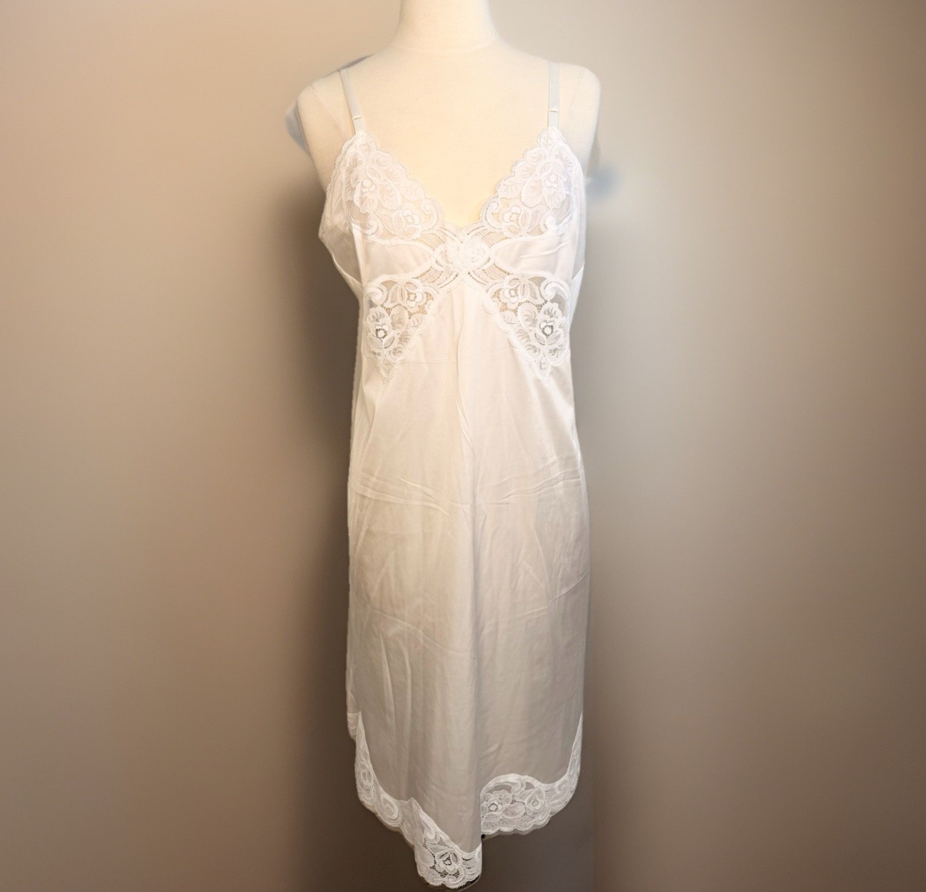Vintage Vanity Fair Sz 38 White Lace Slip Dress Chemise Romantic Tricot Nylon