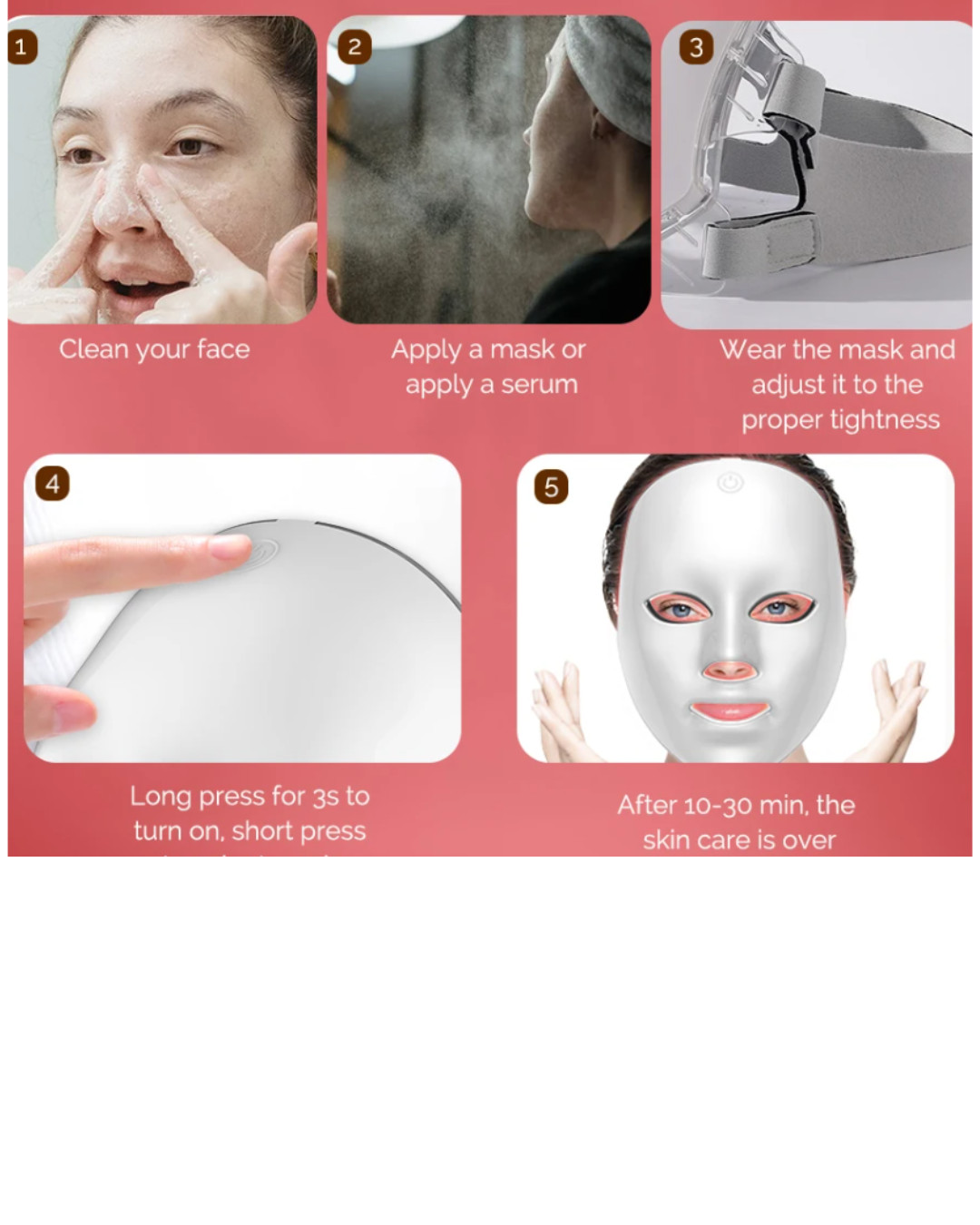 LED Face Mask Red Light Therapy Anti Aging Acne Treatment Skin Rejuvenation Beau