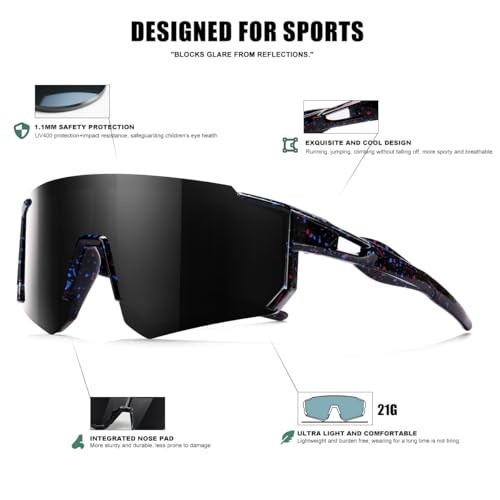 Kids Sunglasses Youth Baseball Sunglasses for Boys Girls 63 Millimeters Black