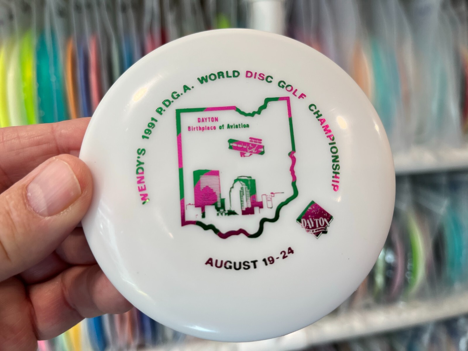 как выглядит 1991 Wendys Blank Innova MINI Disc Golf 485 New Free Frisbee Pin New OOP фото