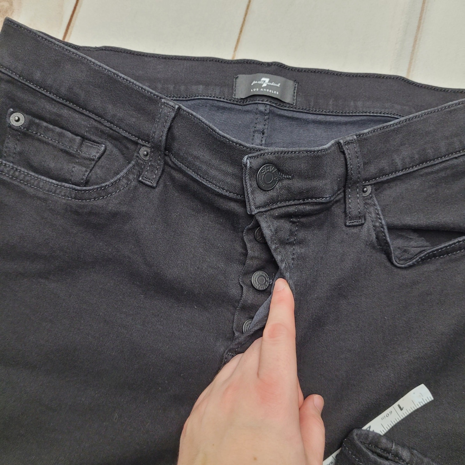 как выглядит 7 For all Mankind Josefina black boyfriend jeans stretch button fly vintage 28 фото