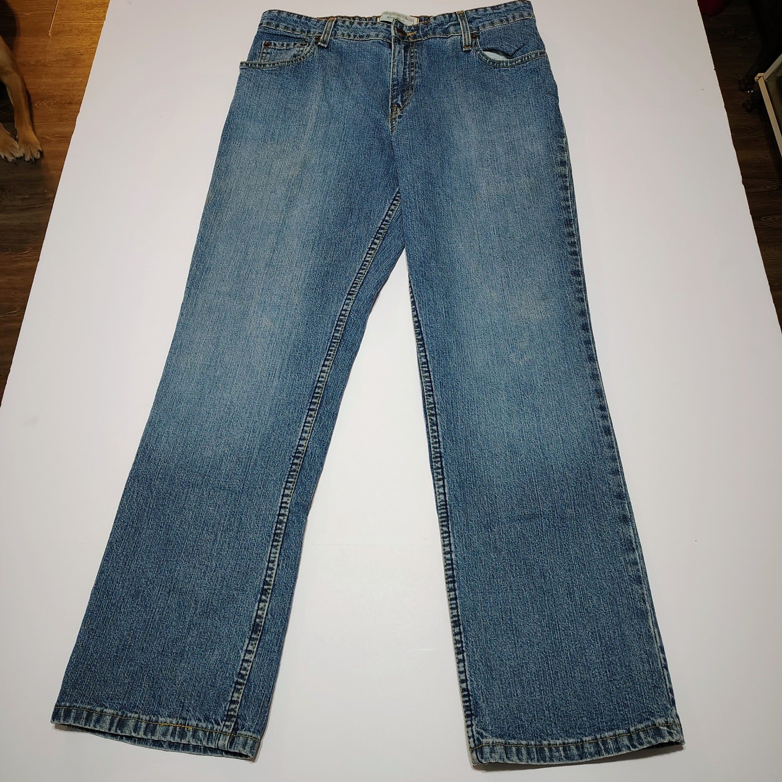 как выглядит Levi Strauss Signature Womens Mid Rise Straight Leg Jeans Blue Denim Sz 12 Short фото