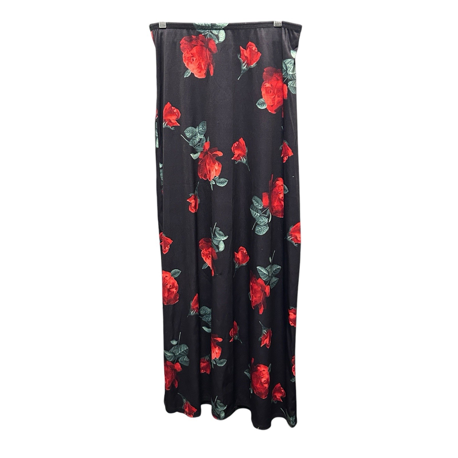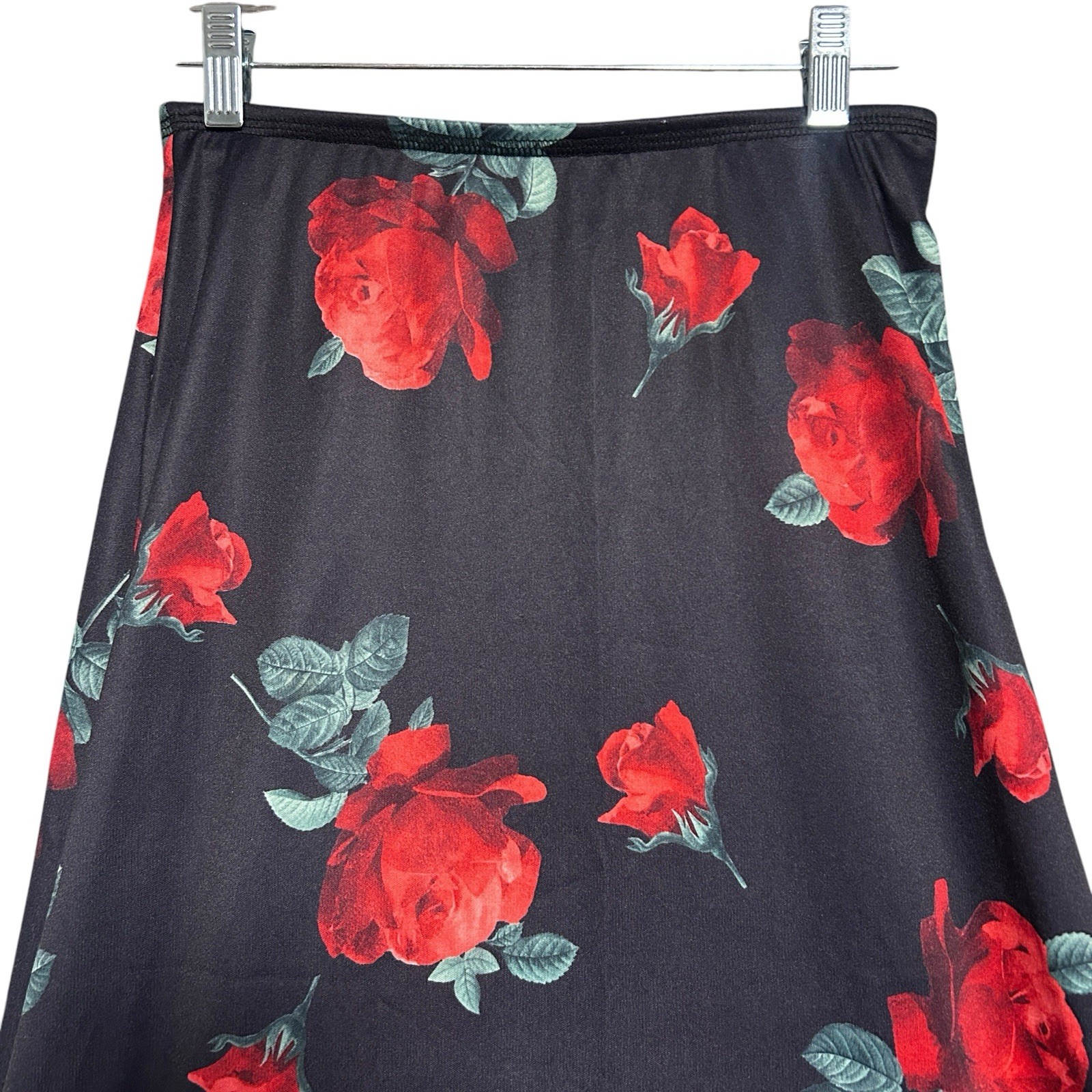 Women s M Red Roses Dark Floral Slit Midi Maxi Skirt Fairy Goth Vampire Romantic