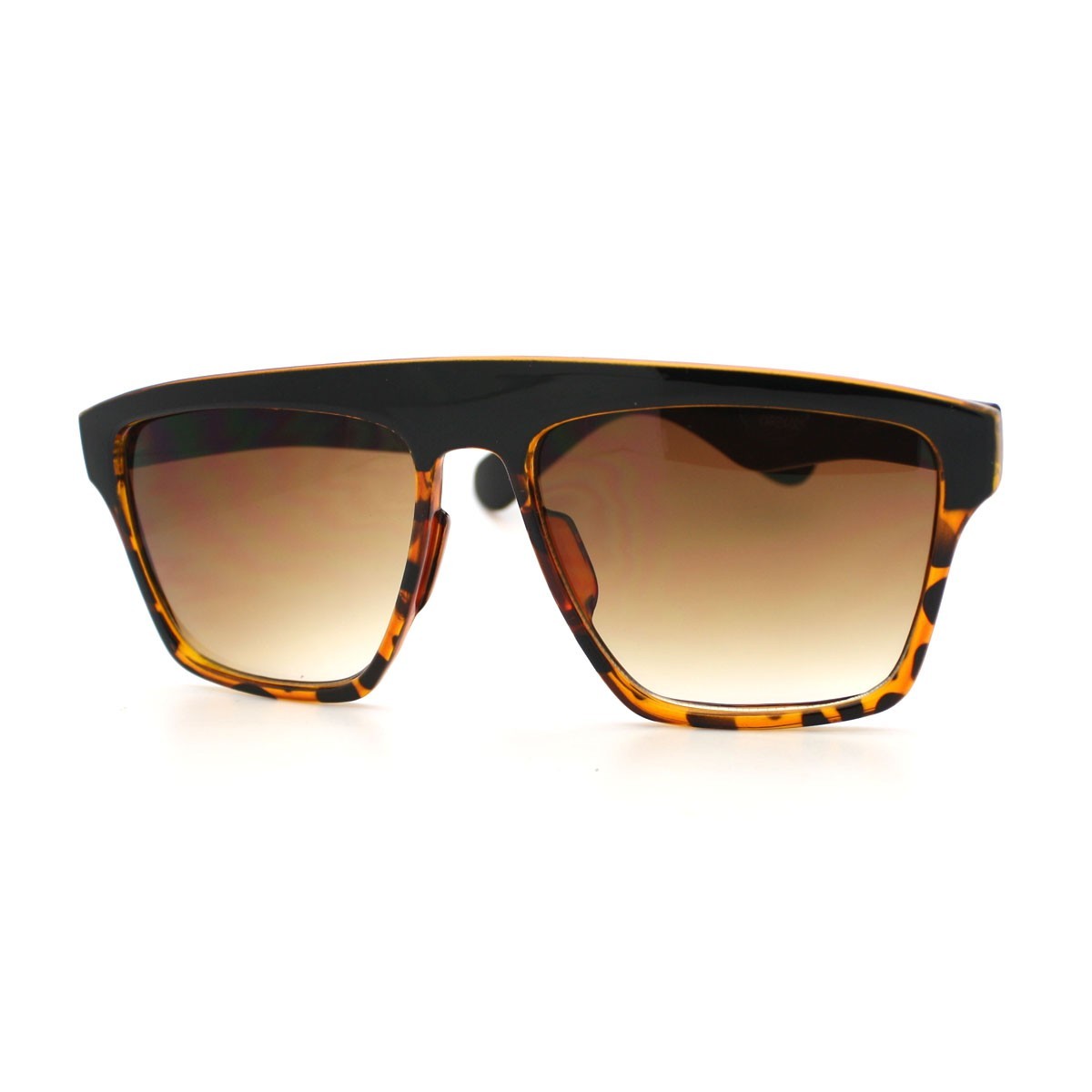 Mens 2 Tone Trendy Futuristic Robot Mobster Curved Flat Top Square Sunglasses