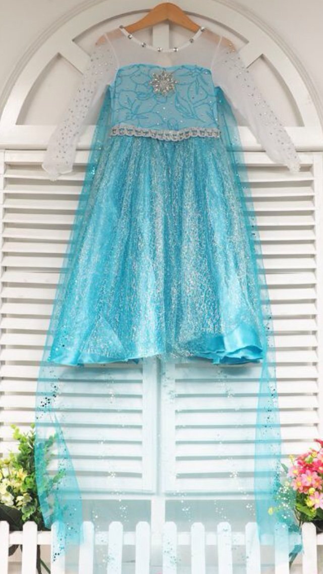 как выглядит NWT Frozen Inspired Blue Foral Elsa Dress Elsa Costume фото