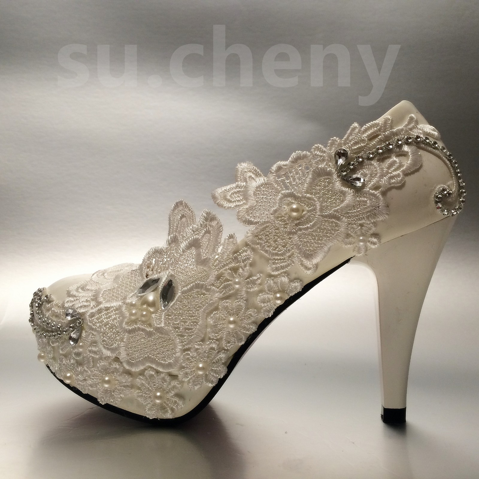 su.cheny 34 white light ivory lace rhinestone Wedding Bridal pumps heels shoes