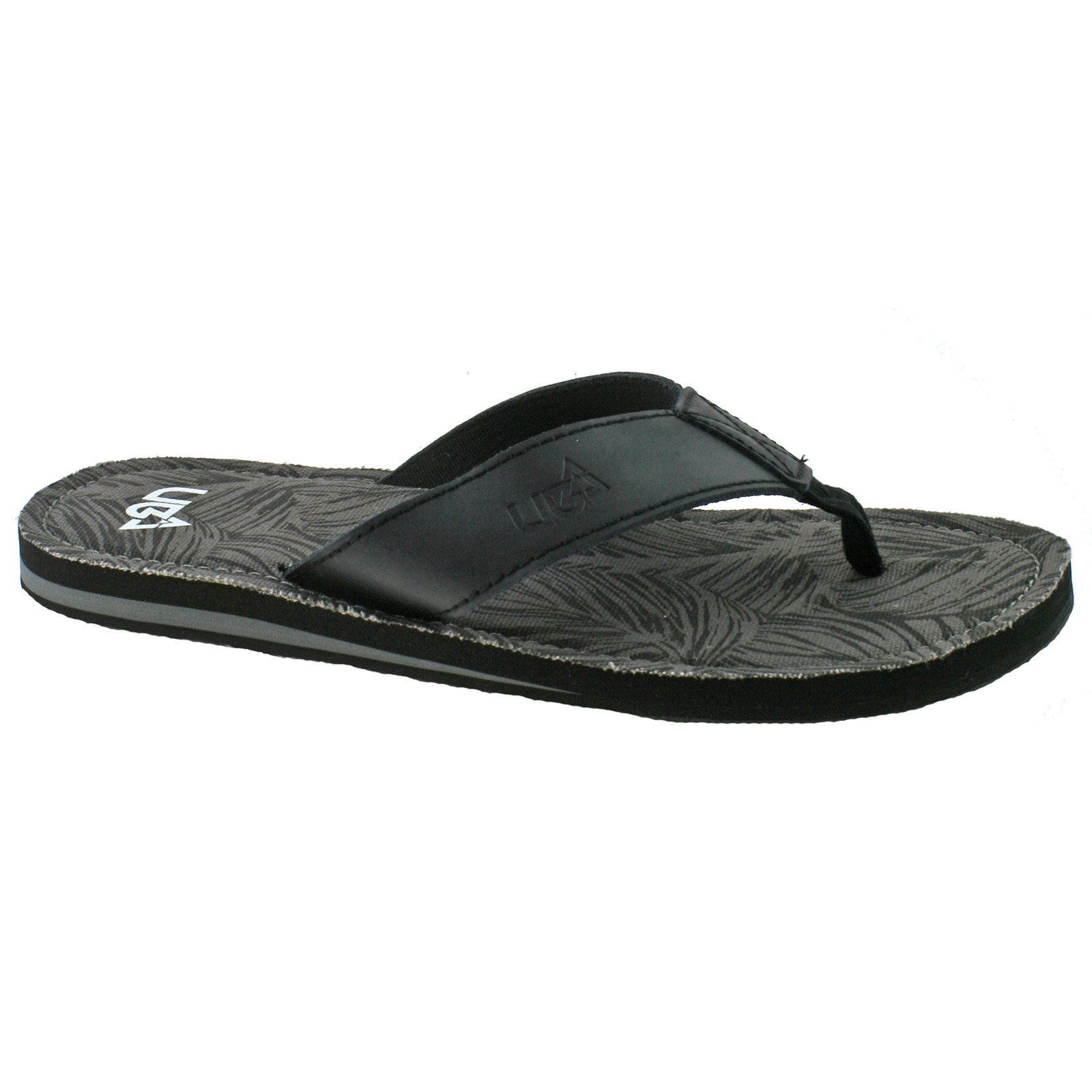 MENS URBAN BEACH COLORADO GREY BLACK LEATHER TOE POST FLIP FLOP BEACH SANDALS