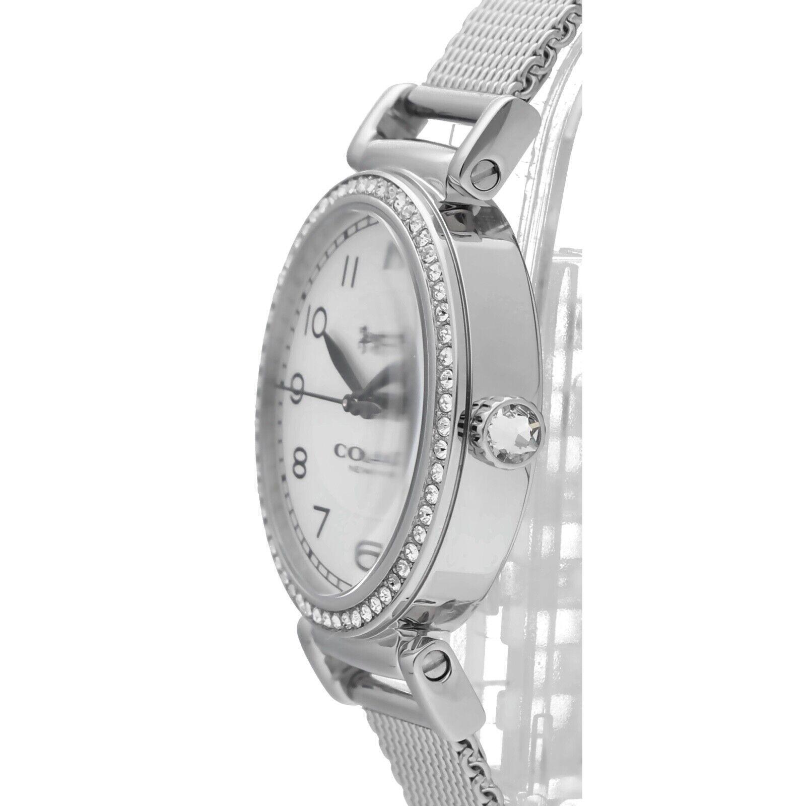 как выглядит COACH 14502651 MADISON WHITE GLITZ DIAL SILVER STAINLESS MESH BAND WOMENS WATCH фото