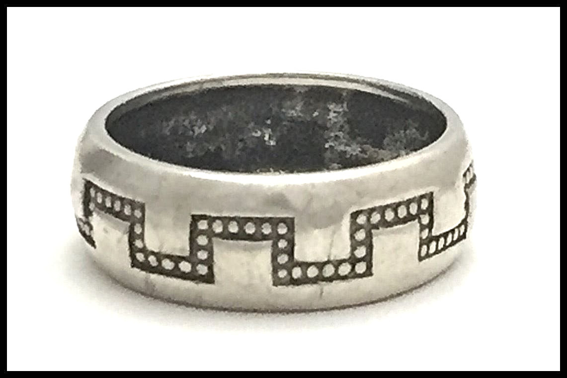 VINTAGE .925 Sterling Silver, Greek Key Pattern Band Ring - Size 7.25
