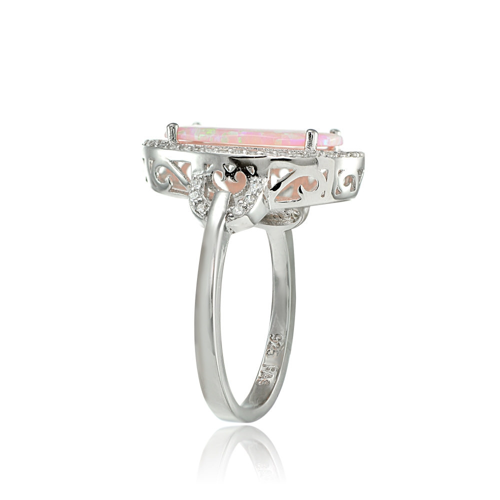 Sterling Silver Created Pink Opal Cubic Zirconia Oval Ring