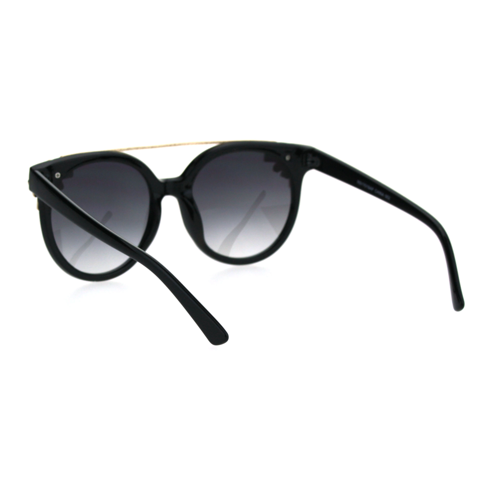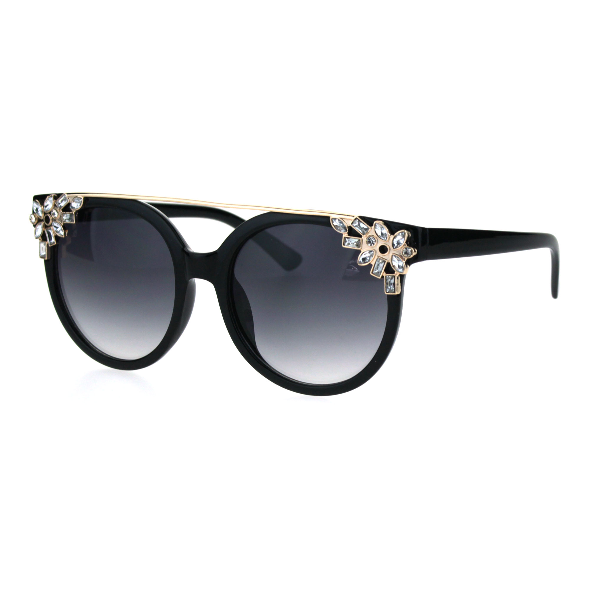 Womens Flat Top Rhinestone Jewel Horn Round Diva Sunglasses